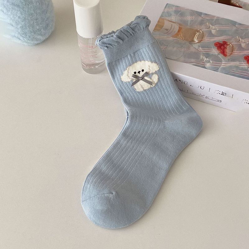 한국 스타일 대학 스타일 귀여운 만화 활 강아지 양말 여성 블루 로리타 소프트 소녀의 올 매치 중간 길이 양말스토어 가기