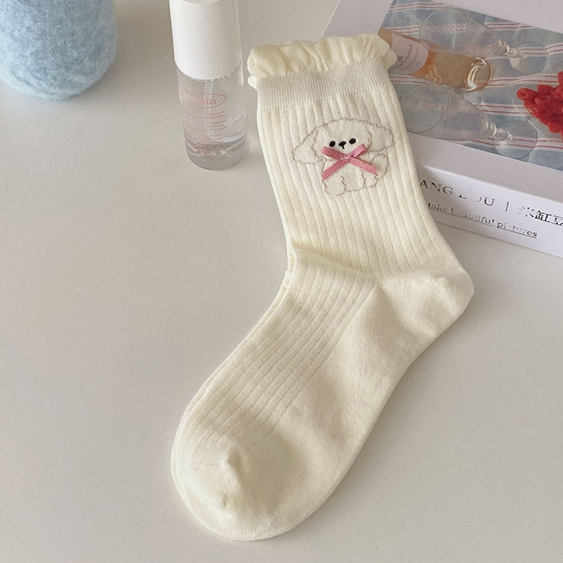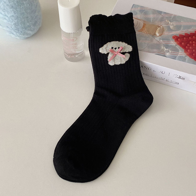 한국 스타일 대학 스타일 귀여운 만화 활 강아지 양말 여성 블루 로리타 소프트 소녀의 올 매치 중간 길이 양말