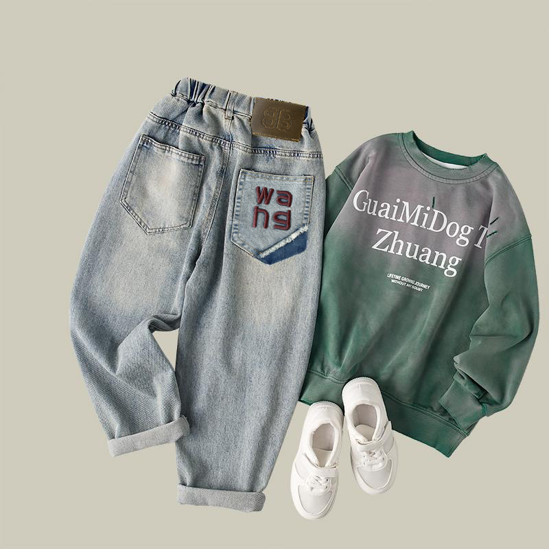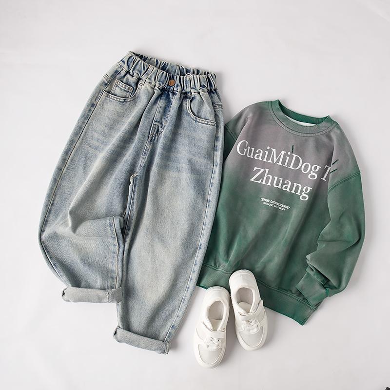[스트레치 청바지] 봄 새로운 마이크로 탄성 청바지 소년의 트렌디 한 아우터 바지 스타일 세탁 데님스토어 가기