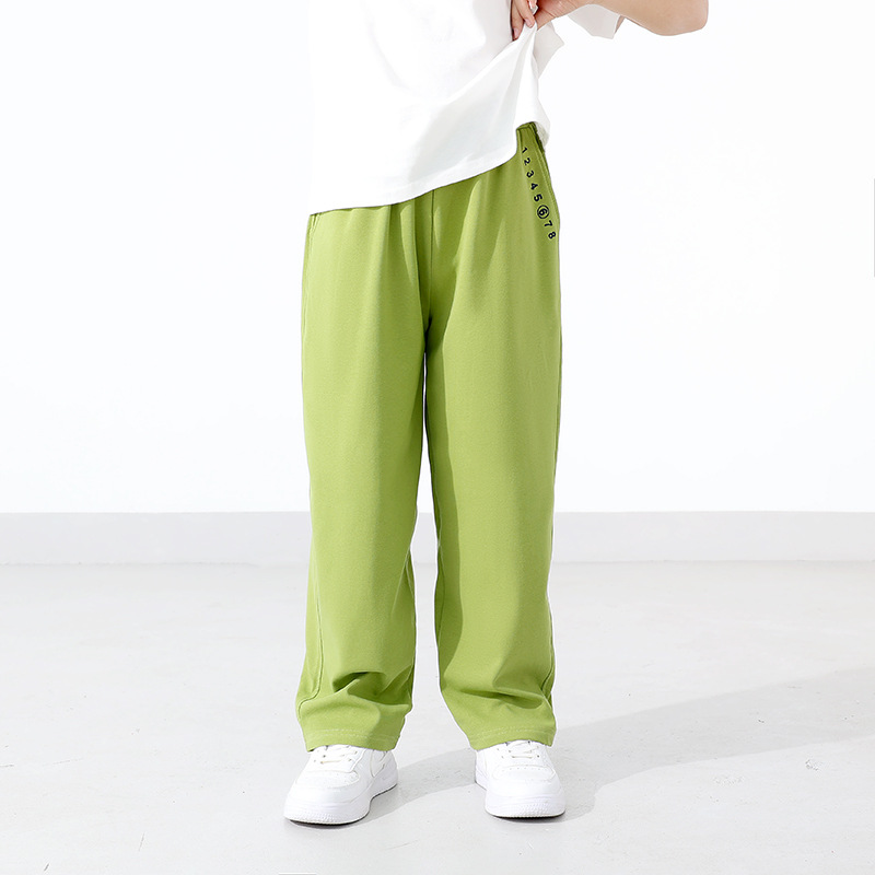 봄과 여름 한국 스타일의 새로운 어린이 캐주얼 바지 큰 어린이 수 놓은 느슨한 세이버 바지 소년 모기 방지 바지 도매