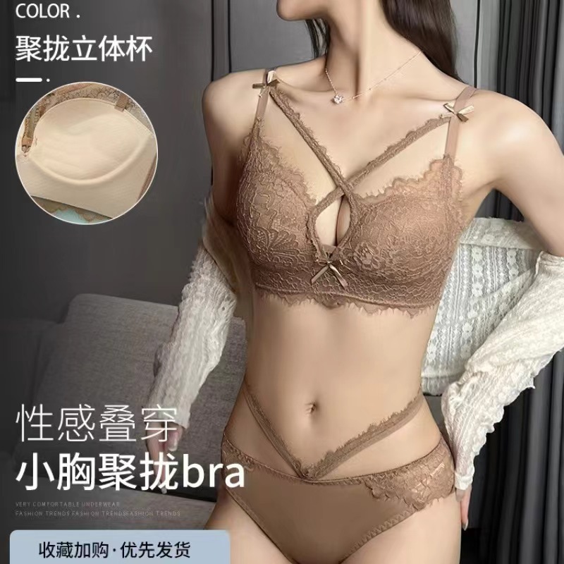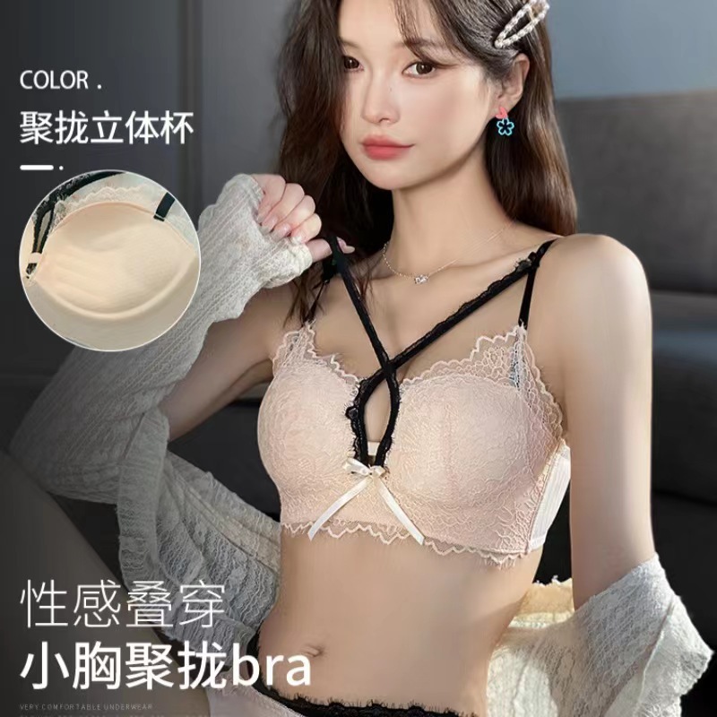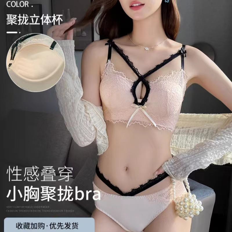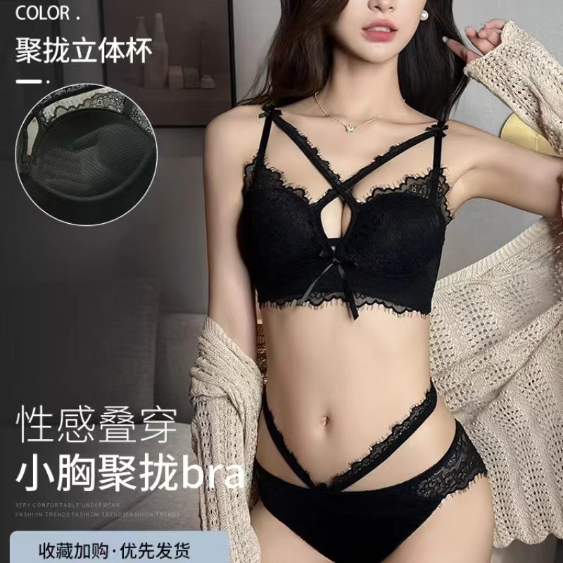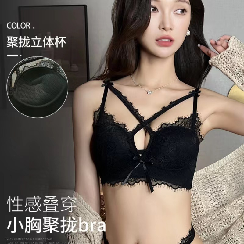 섹시한 레이스 크로스 스트랩 푸시 업 큰 사이즈 속옷 여성용 작은 브래지어 스틸 반지 유방 브래지어 세트스토어 가기