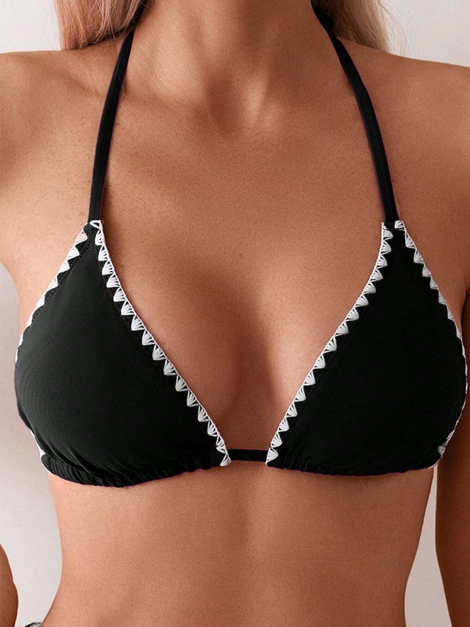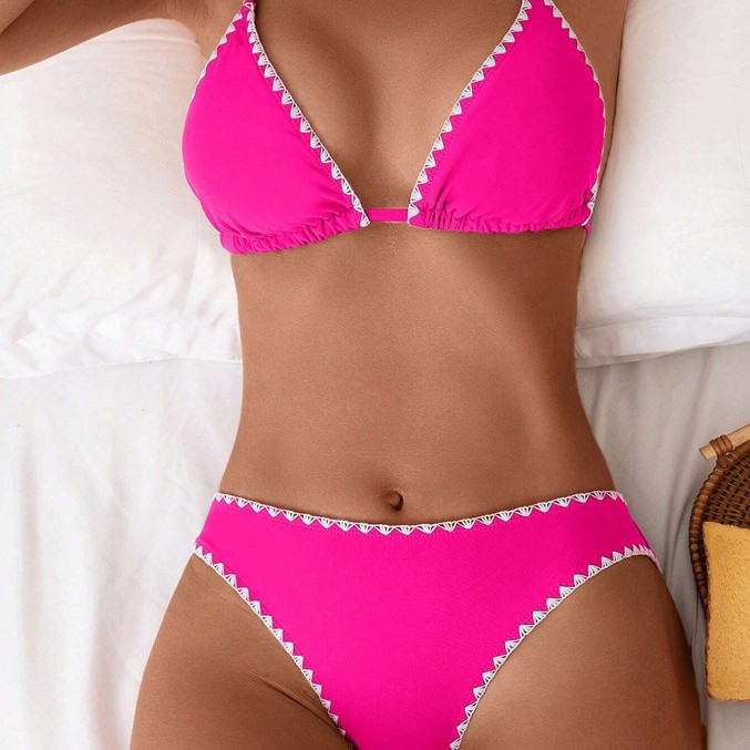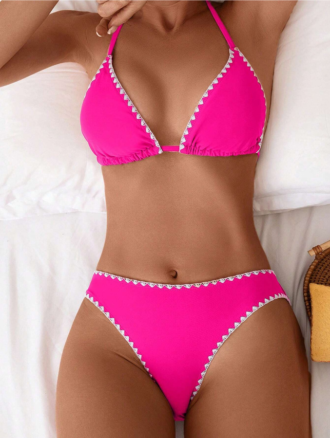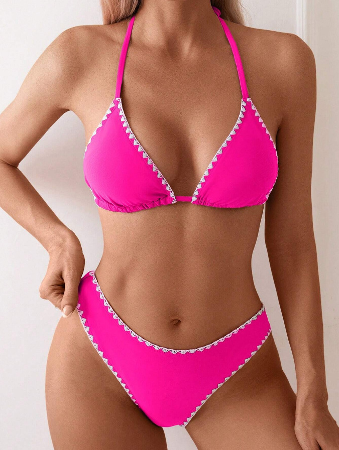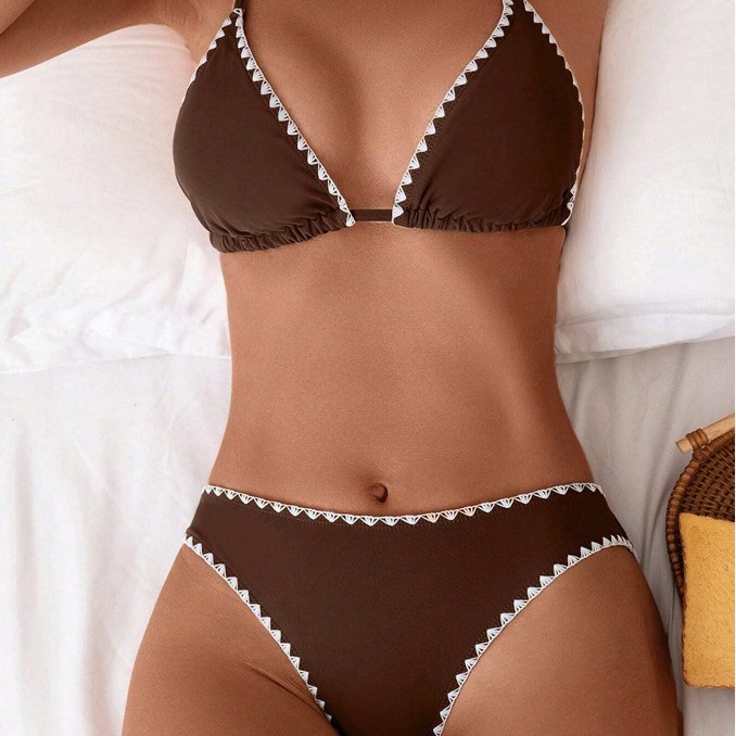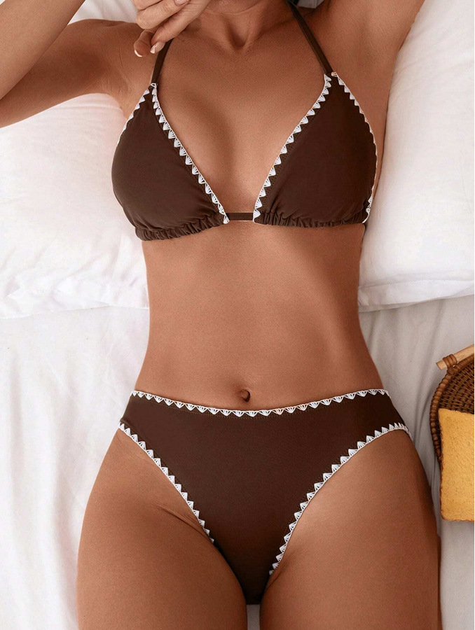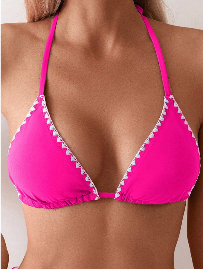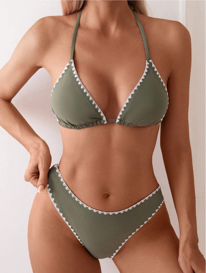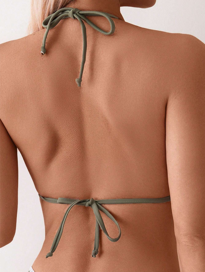 유럽과 미국의 비키니 아마존 섹시 슬림 백리스 수영복 목 삼각형 가방 일반 꽃 버드 스플릿 수영복 여성용