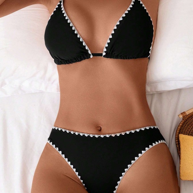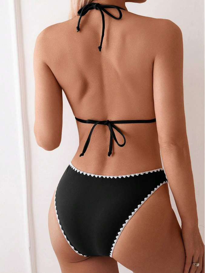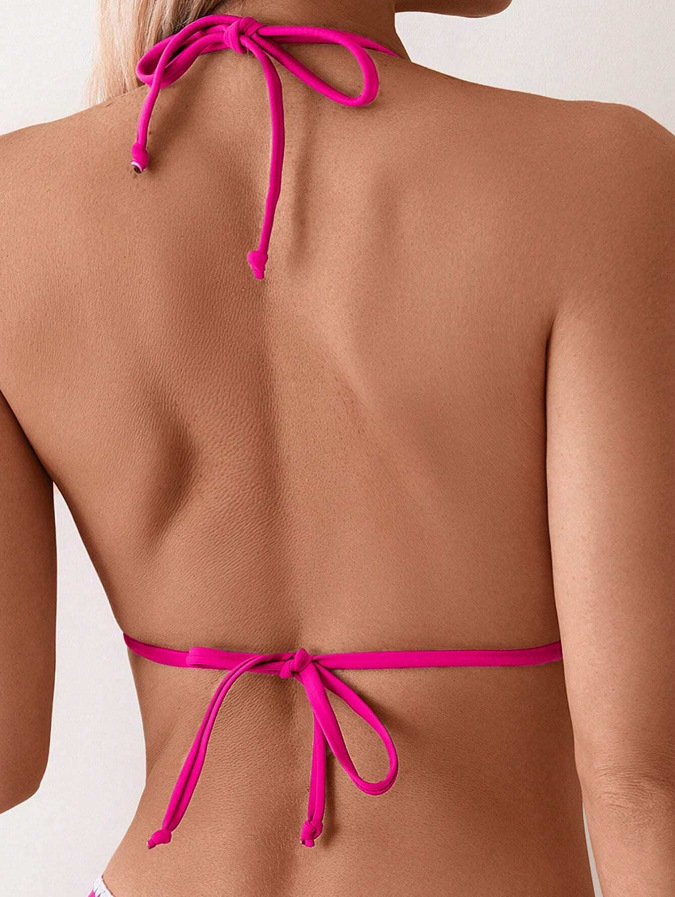 유럽과 미국의 비키니 아마존 섹시 슬림 백리스 수영복 목 삼각형 가방 일반 꽃 버드 스플릿 수영복 여성용스토어 가기