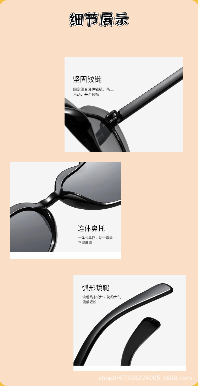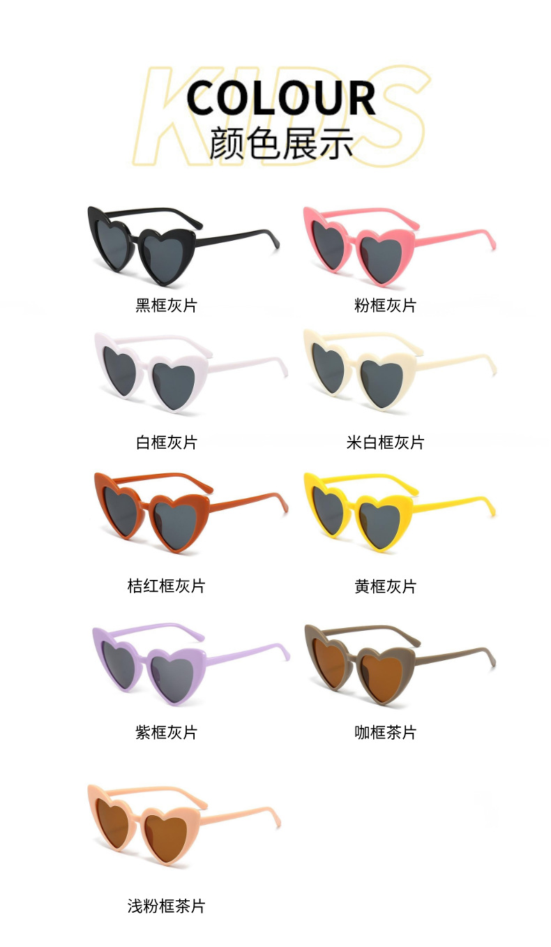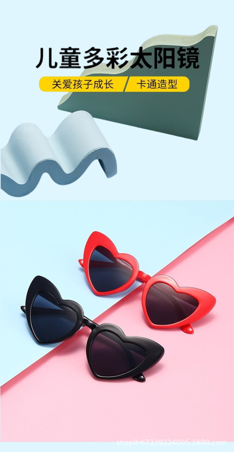 어린이의 새로운 사랑 선글라스, 맞춤형 복숭아 하트, 비스듬한 사랑 선글라스, 패션 어린이 선글라스 도매스토어 가기