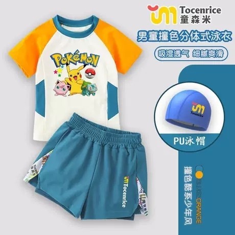 Xinkemeng 어린이 수영복 소년 분할 빠른 건조 태양 보호 2025 새로운 피카추 중 및 대형 어린이 전문 훈련 조수스토어 가기