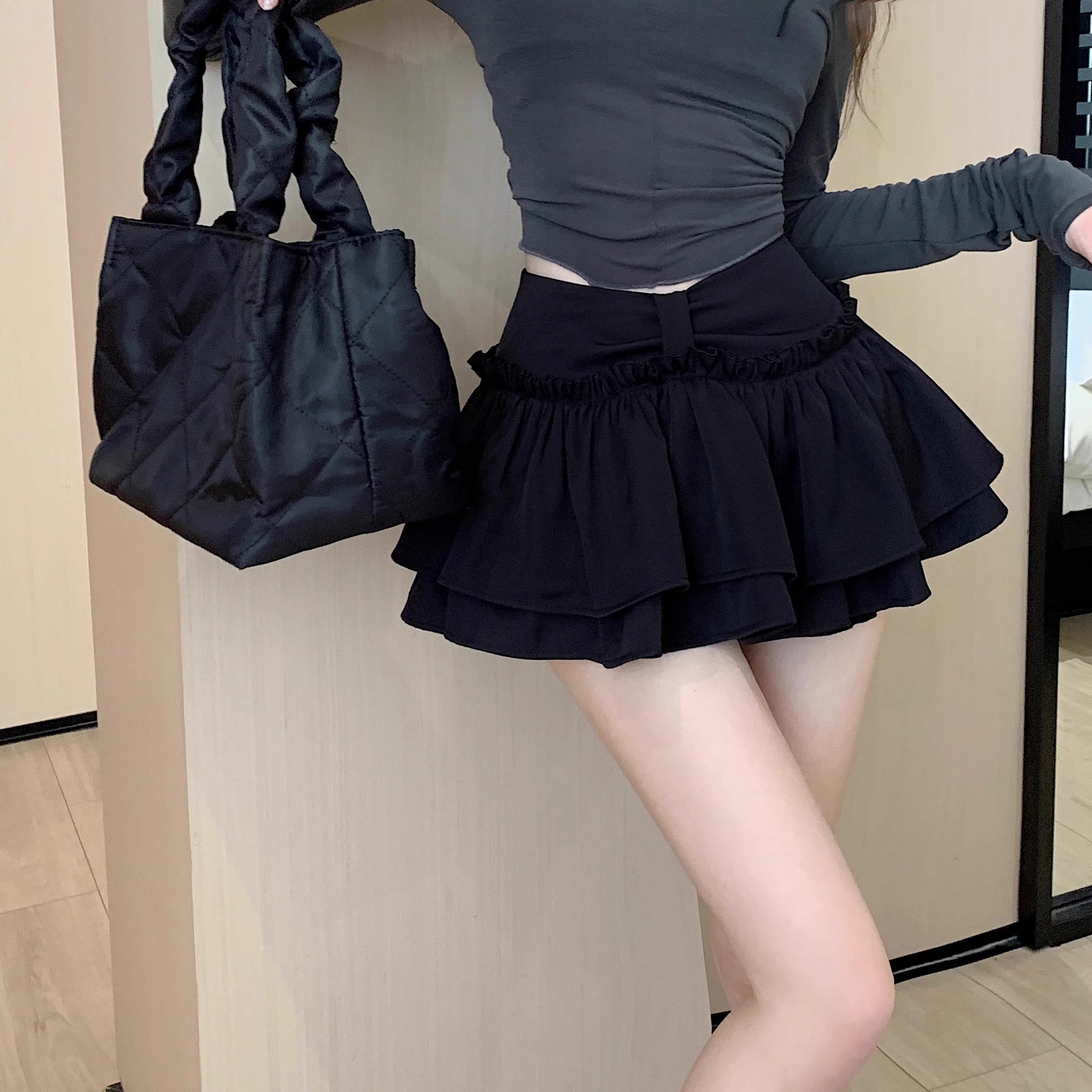 발레 스파이스 소녀 푹신한 치마 여성 2025 년 여름 높은 허리 다리 긴 A 라인 안티 라이트 미니 스커트