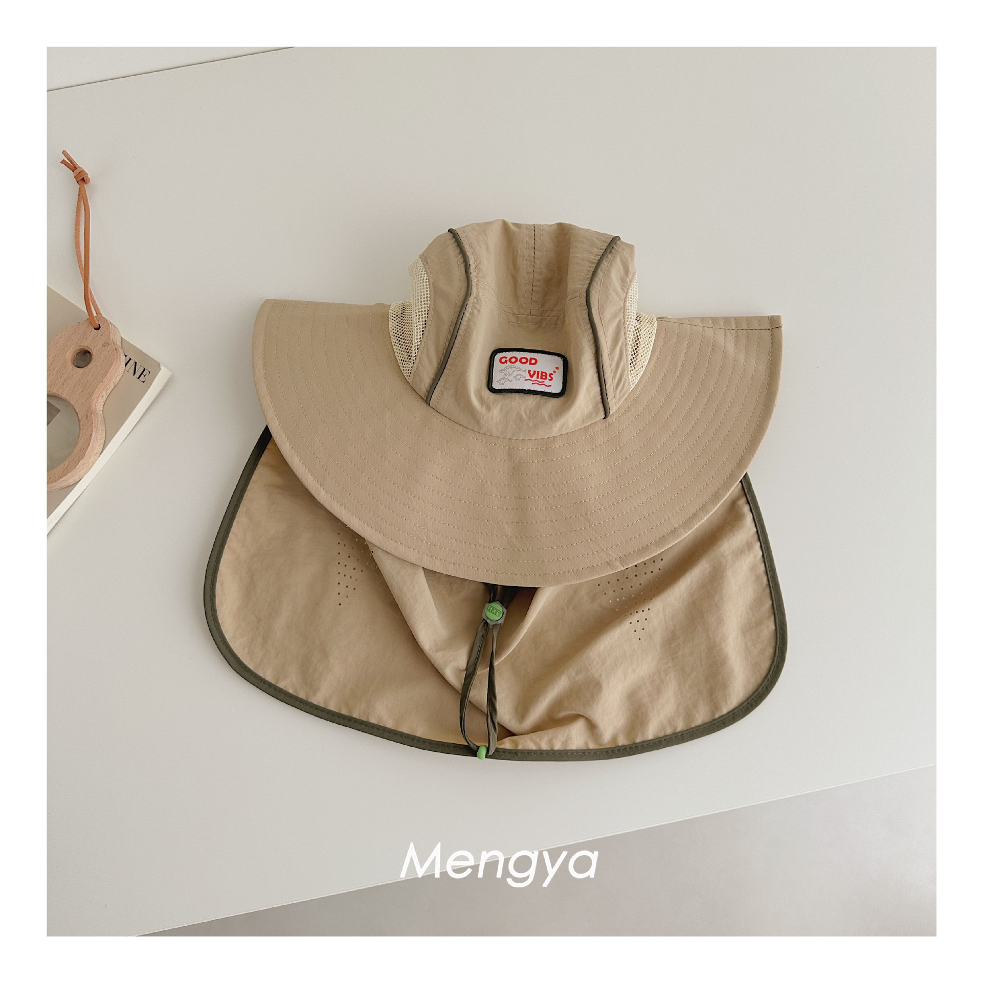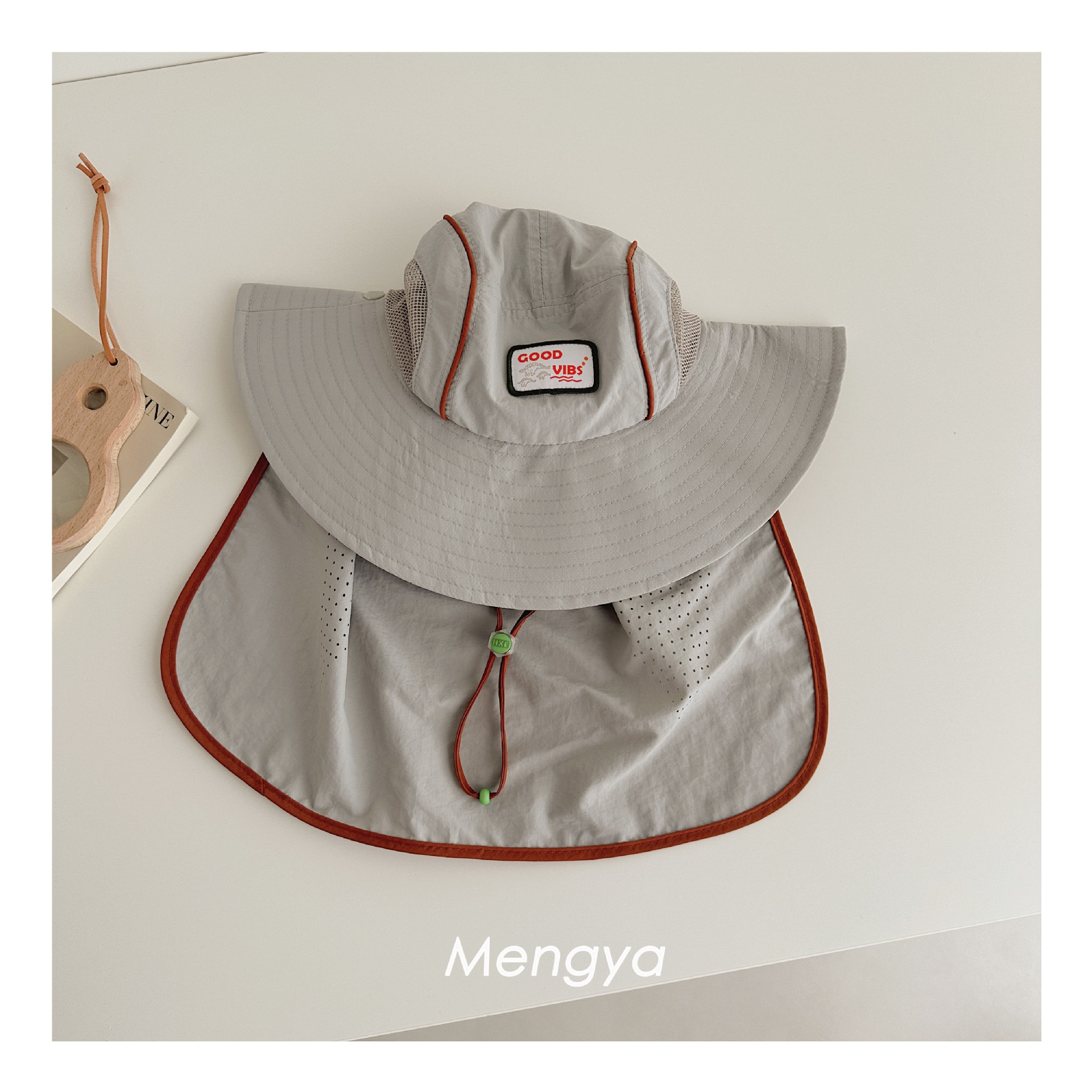 소년 소녀를위한 큰 챙이 달린 어린이 여름 선스크린 모자 빠른 건조 통기성 분리 가능한 목도리 모자 경량 어부 모자 트렌디