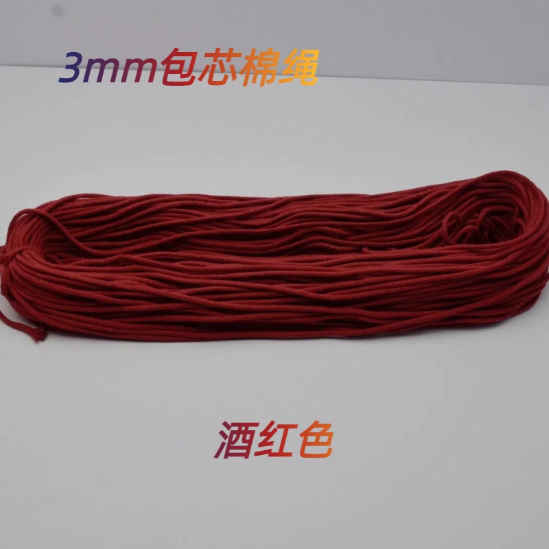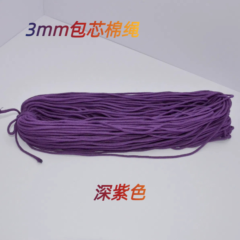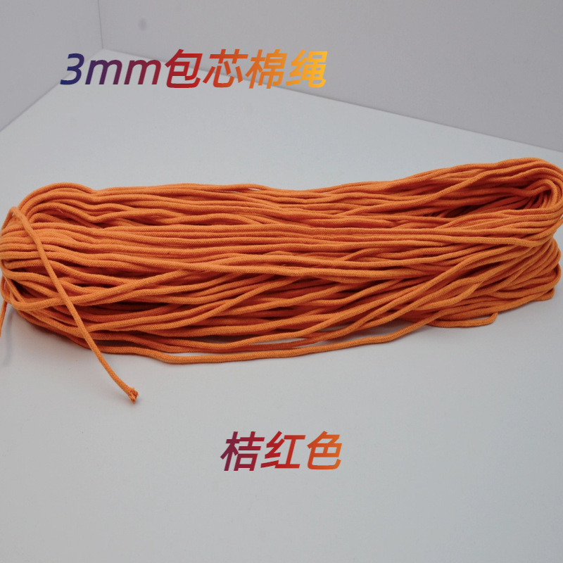 3mm 코어가 있는 면로프, 컬러풀한 원형 로프, 섬유 의류용 웨빙 부자재, 수공예 DIY 롤링 로프