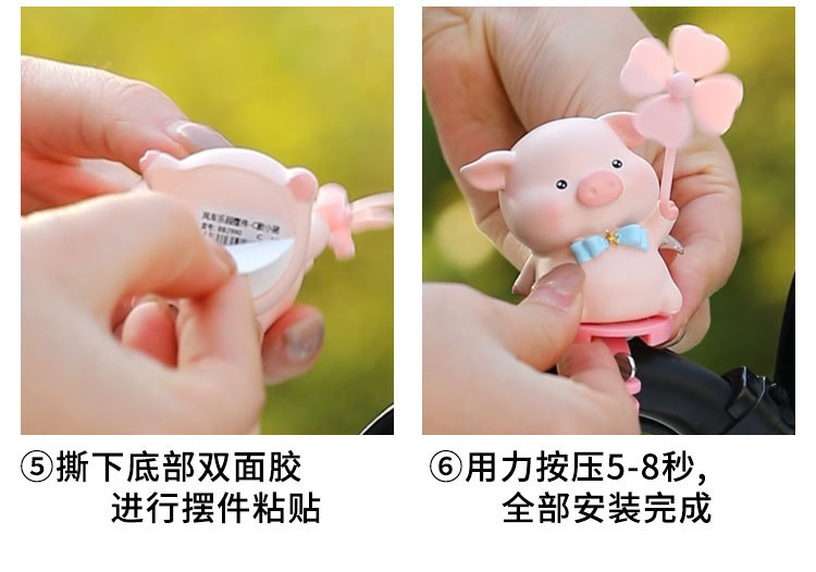创意卡通可爱动物风车电动车自行车装饰转转萌小猪自行车卡扣摆件