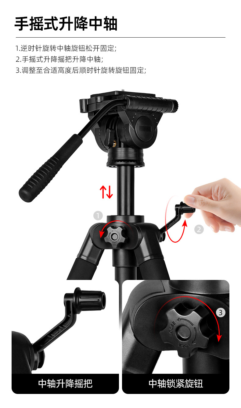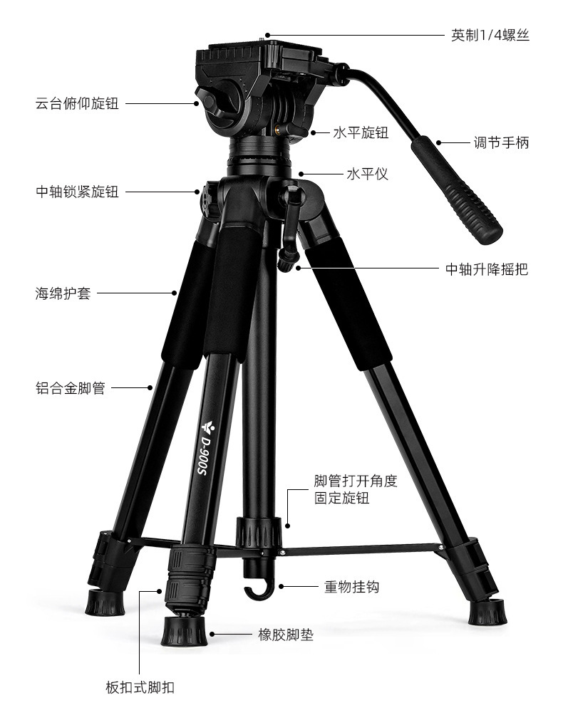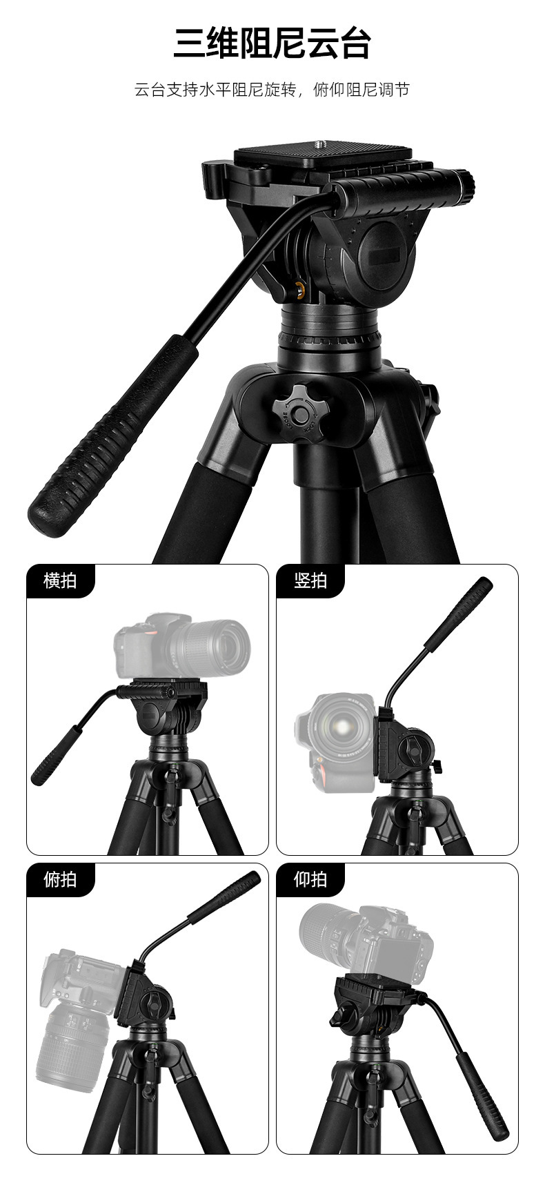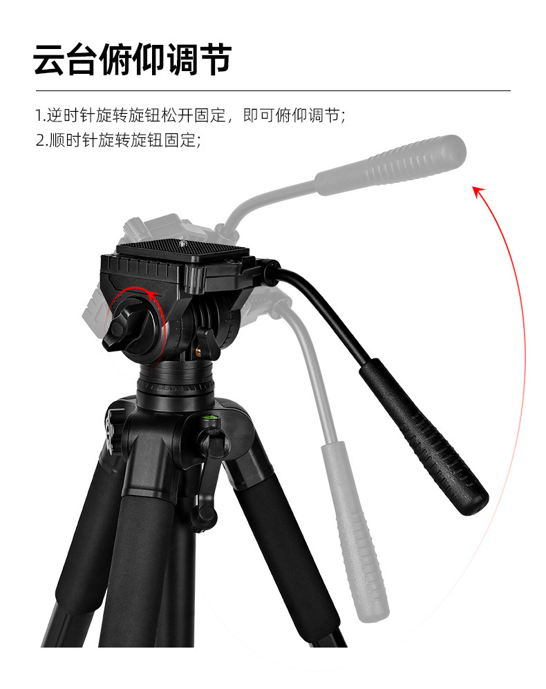 2m 삼각대 카메라 사진 촬영 망원경 삼각대 휴대폰 라이브 방송 스탠드 유압 헤드 최대하중 6KG