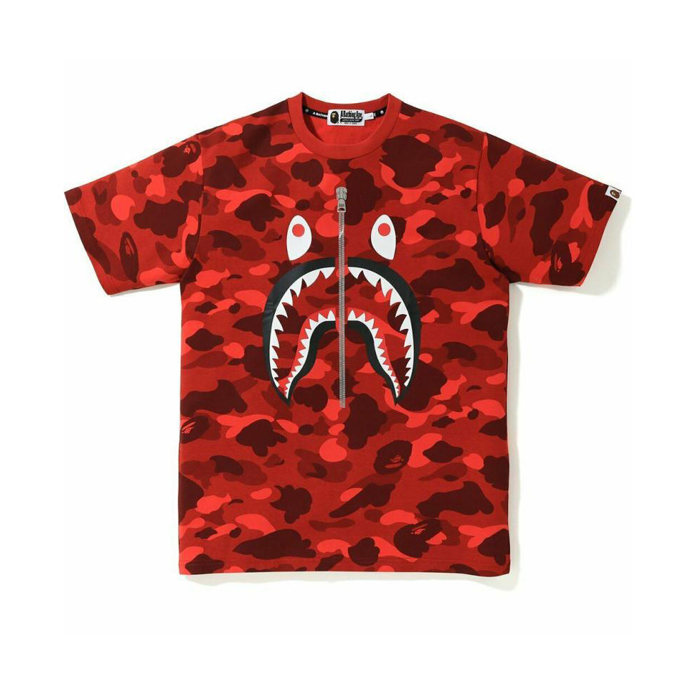대외 무역 국경 도매 베이프 패션 브랜드 3D 디지털 인쇄 가짜 지퍼 위장 상어 남성과 여성의 짧은 소매 티셔츠
