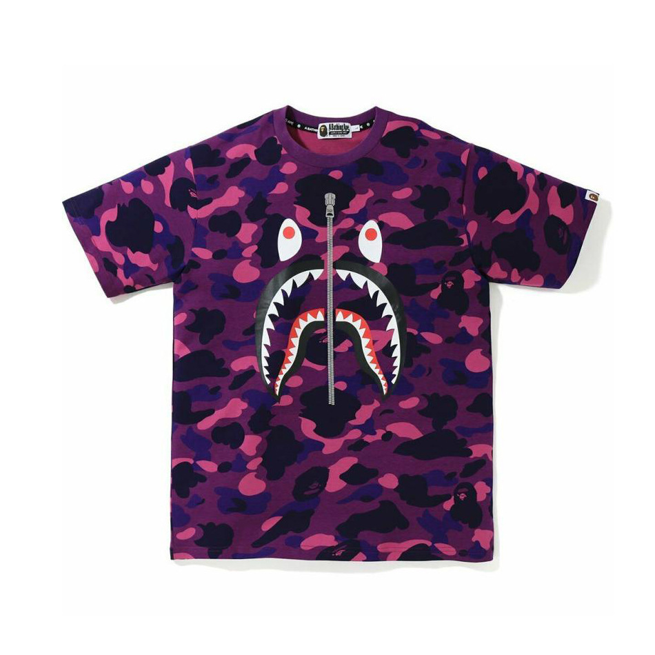 대외 무역 국경 도매 베이프 패션 브랜드 3D 디지털 인쇄 가짜 지퍼 위장 상어 남성과 여성의 짧은 소매 티셔츠스토어 가기
