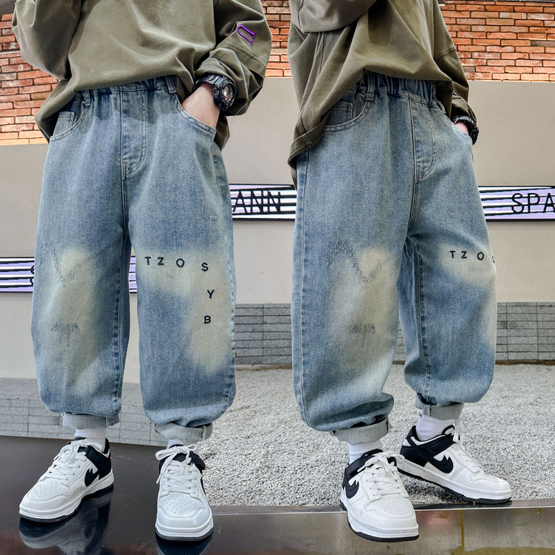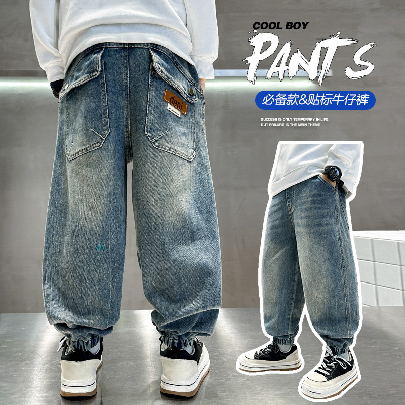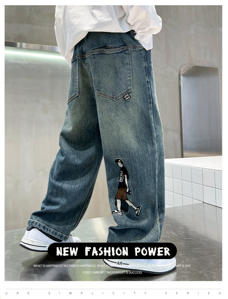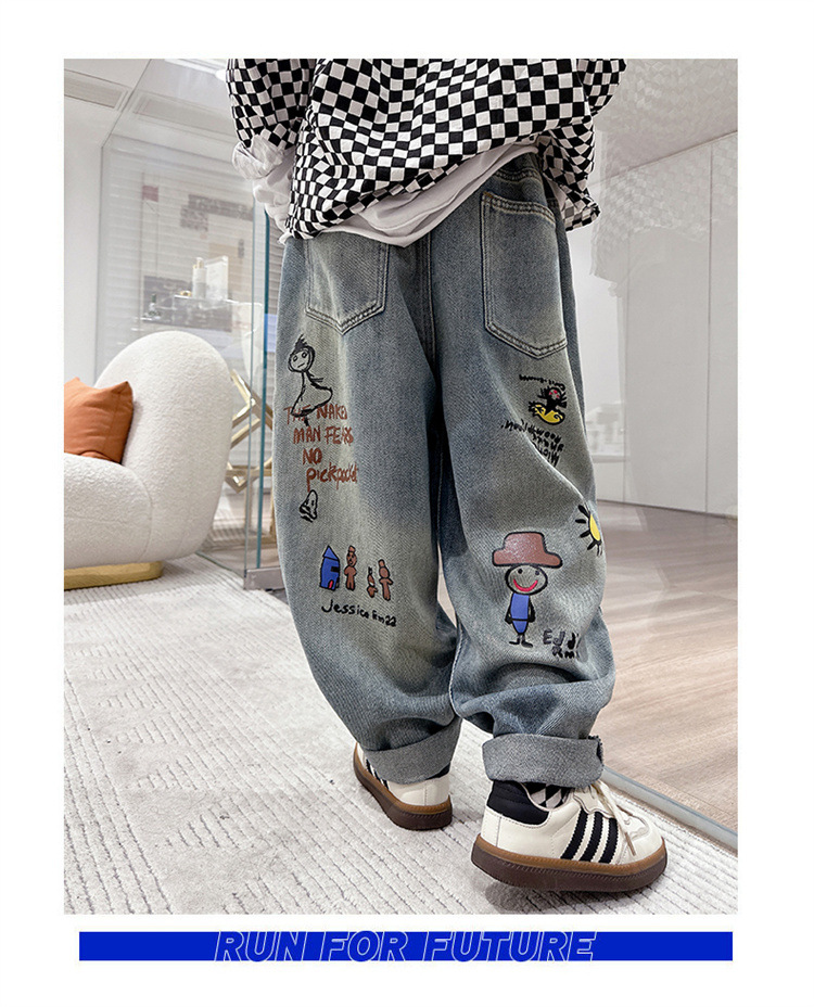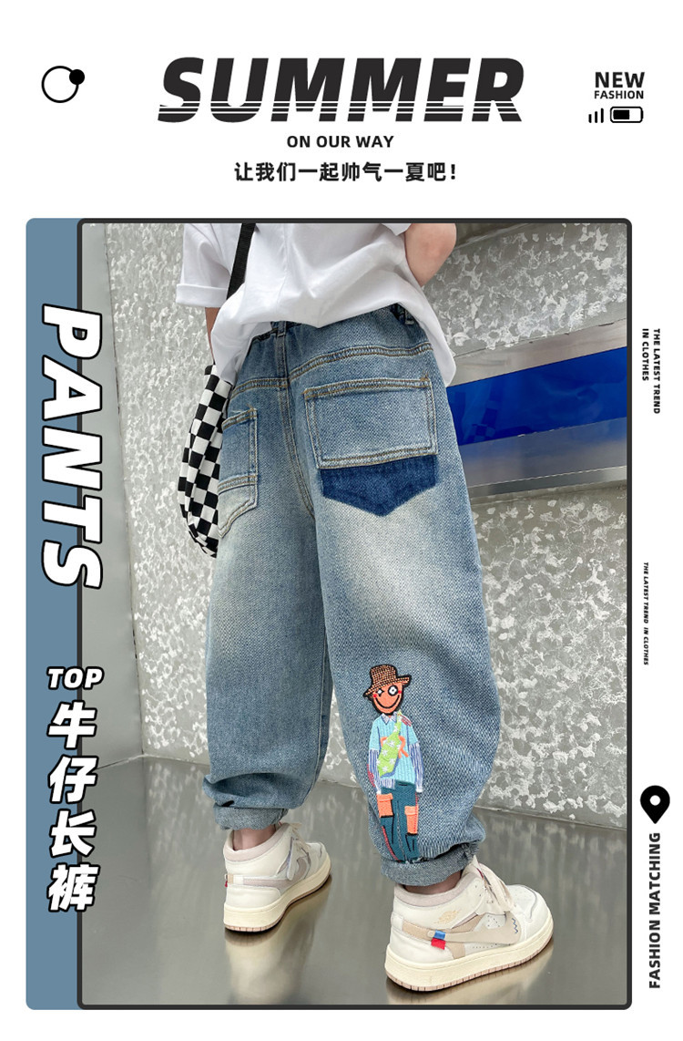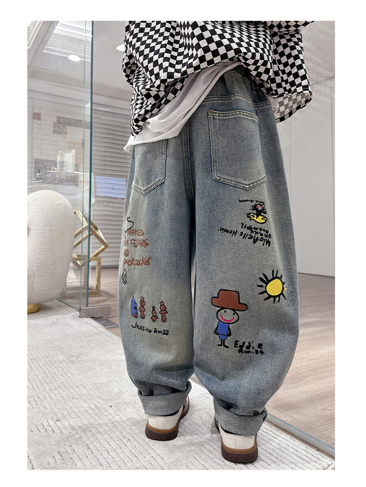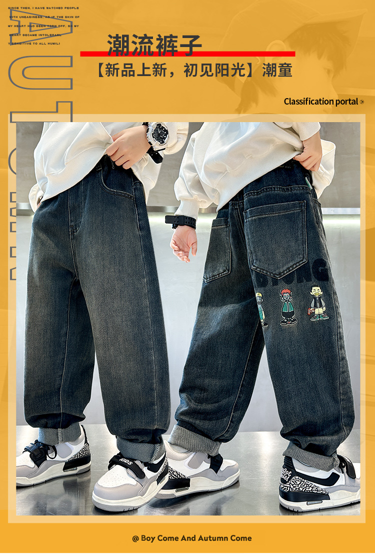 아동용 데님 팬츠 봄 가을 신상품 스트레이트 핏 부드러운 남아 바지 중대형 아동용 만화 캐릭터 봄 얇은 바지 2026 봄 남아용스토어 가기