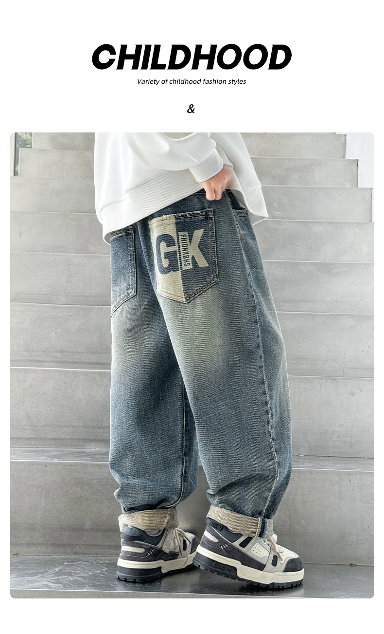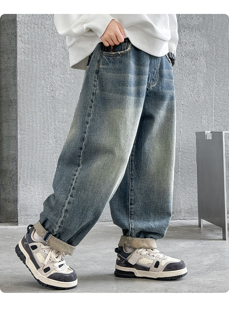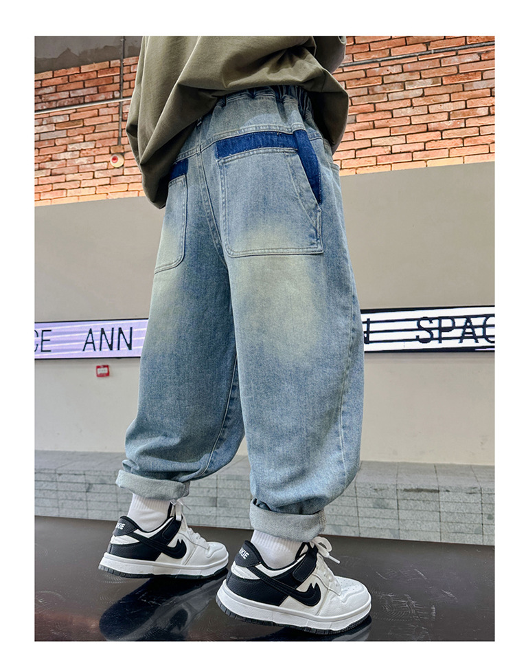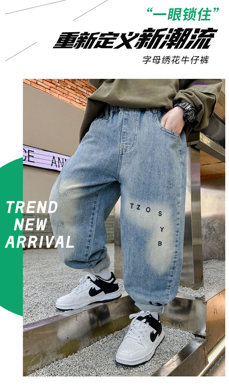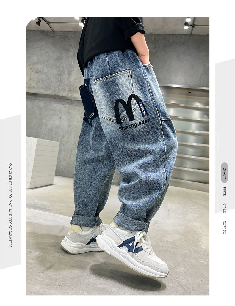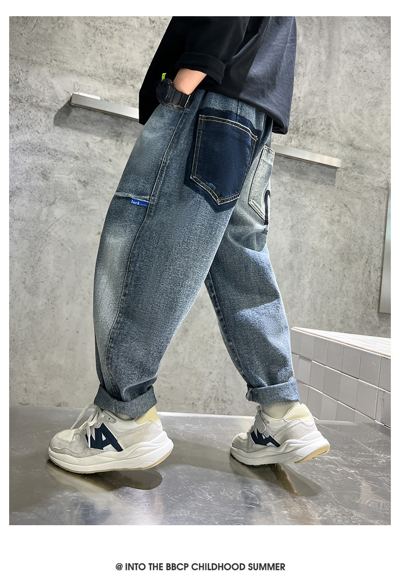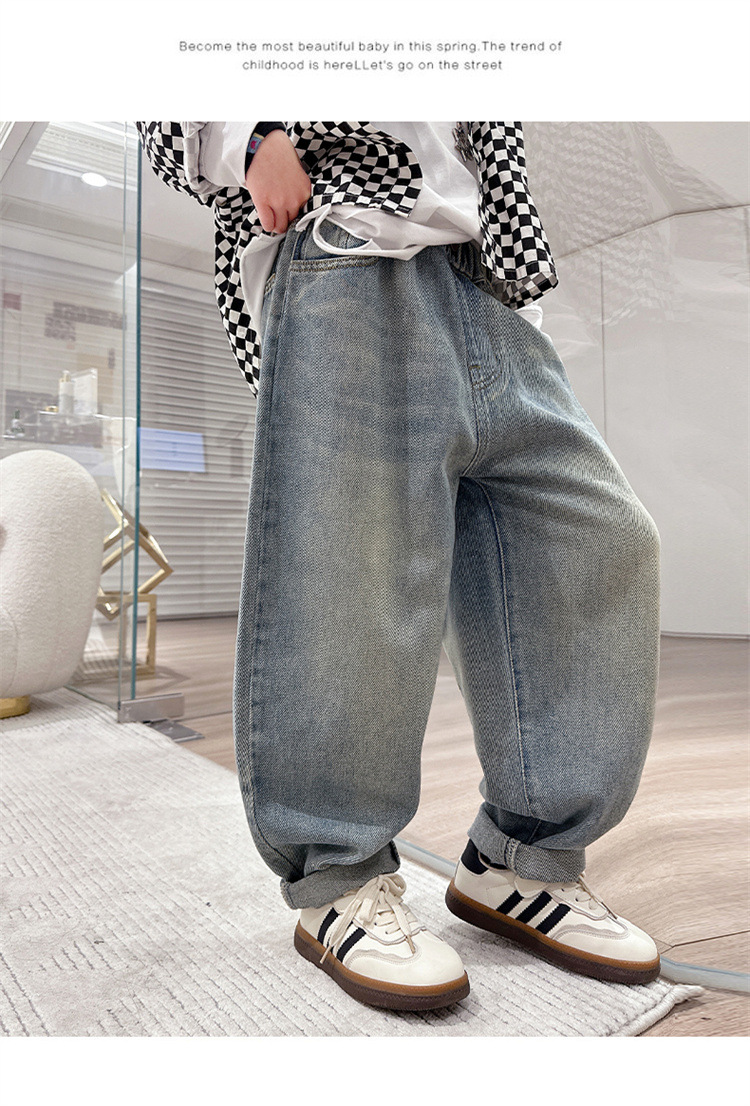아동용 데님 팬츠 봄 가을 신상품 스트레이트 핏 부드러운 남아 바지 중대형 아동용 만화 캐릭터 봄 얇은 바지 2026 봄 남아용스토어 가기