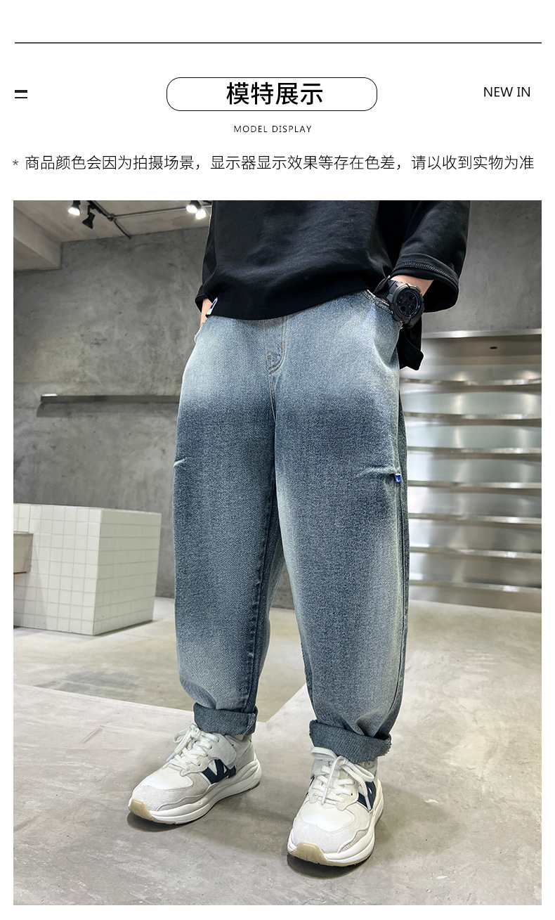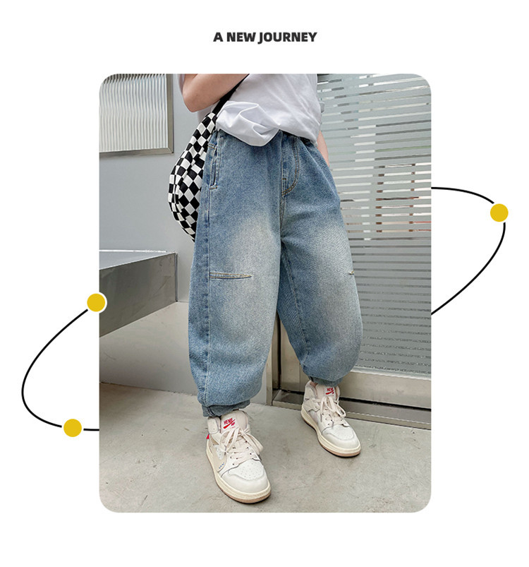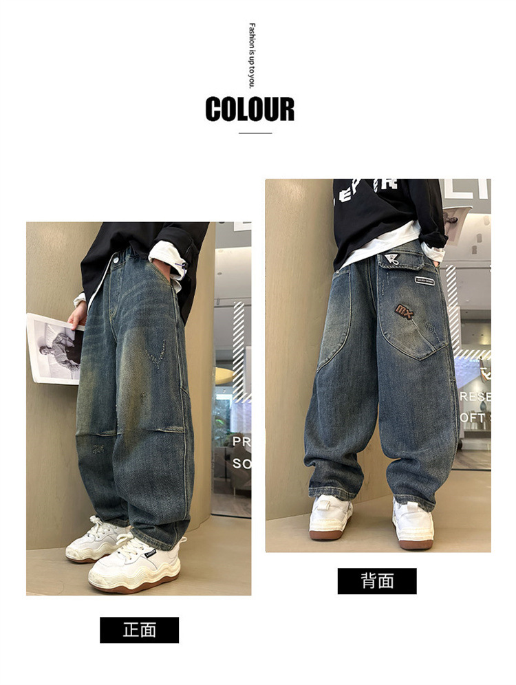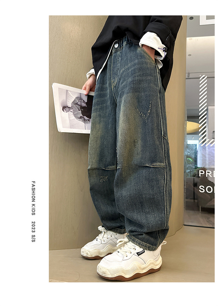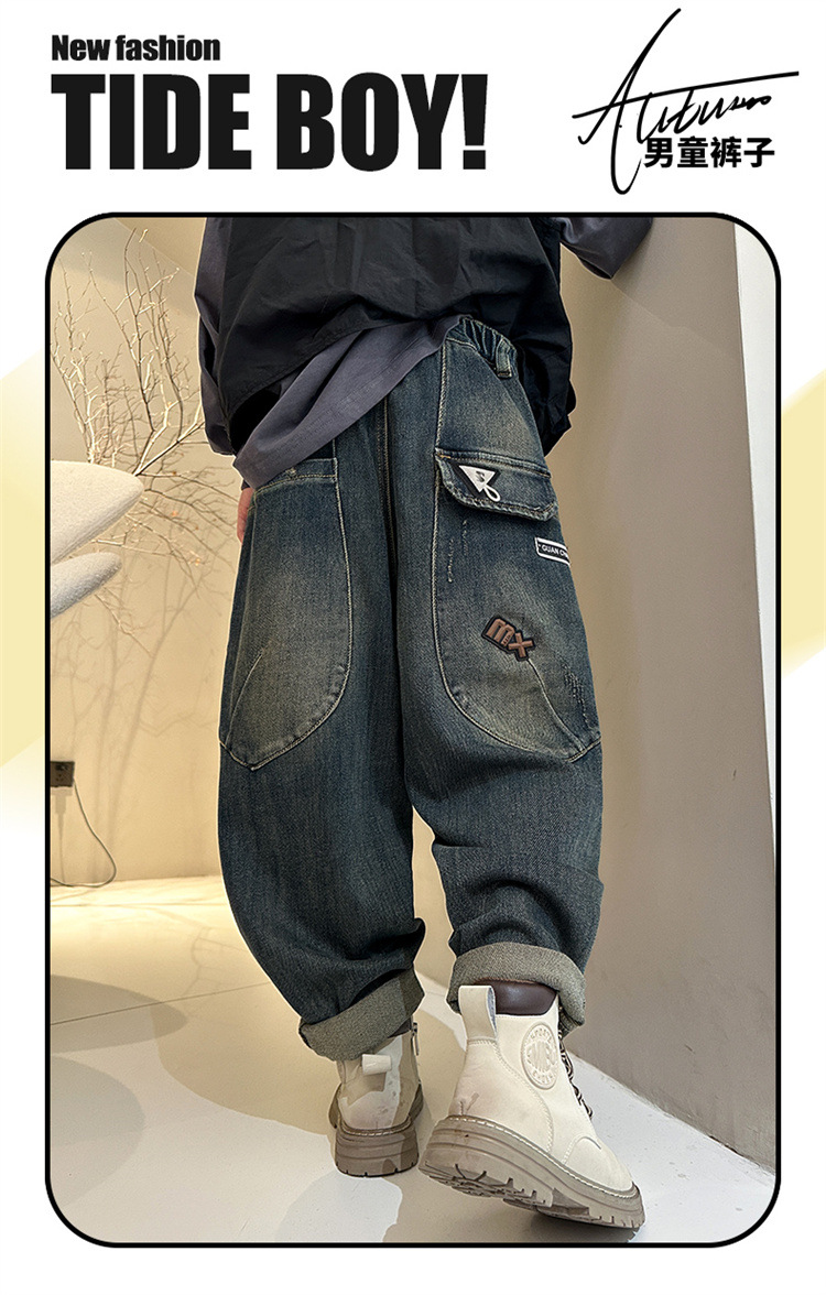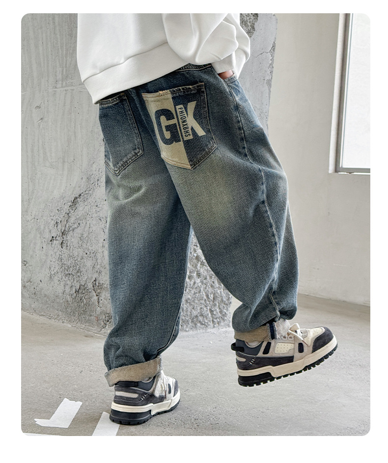 아동용 데님 팬츠 봄 가을 신상품 스트레이트 핏 부드러운 남아 바지 중대형 아동용 만화 캐릭터 봄 얇은 바지 2026 봄 남아용스토어 가기
