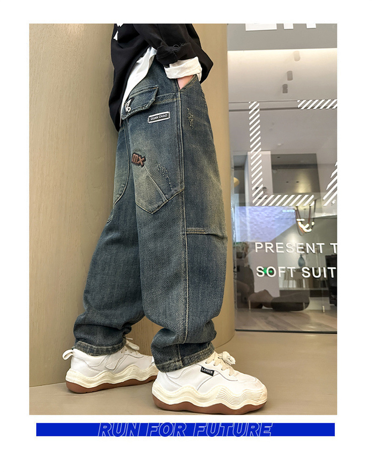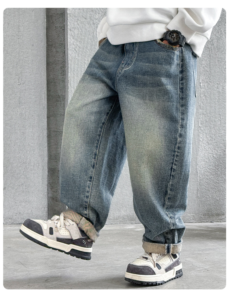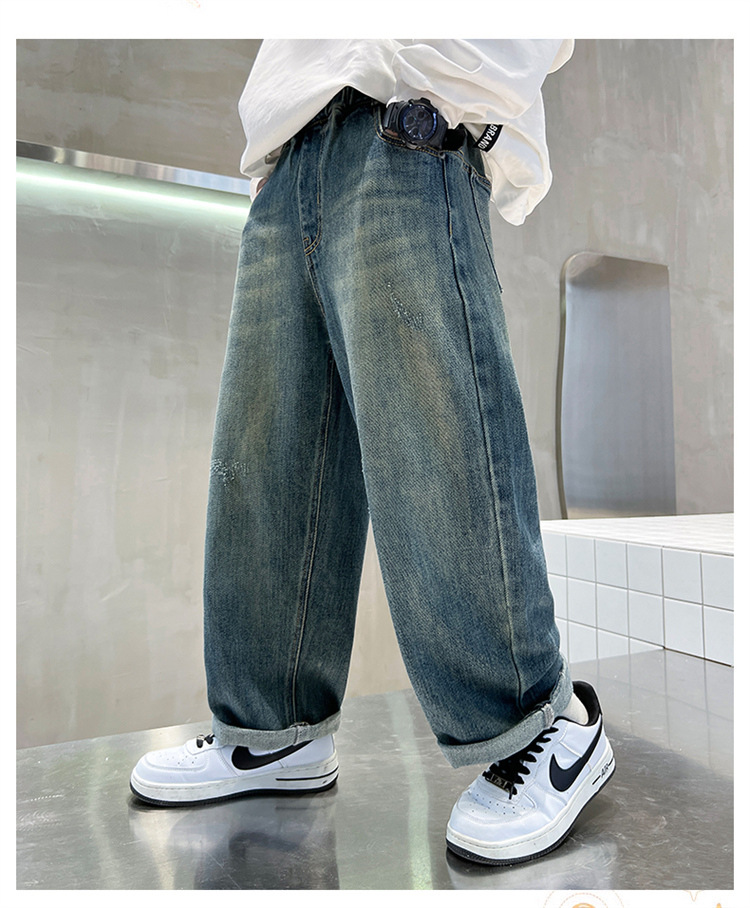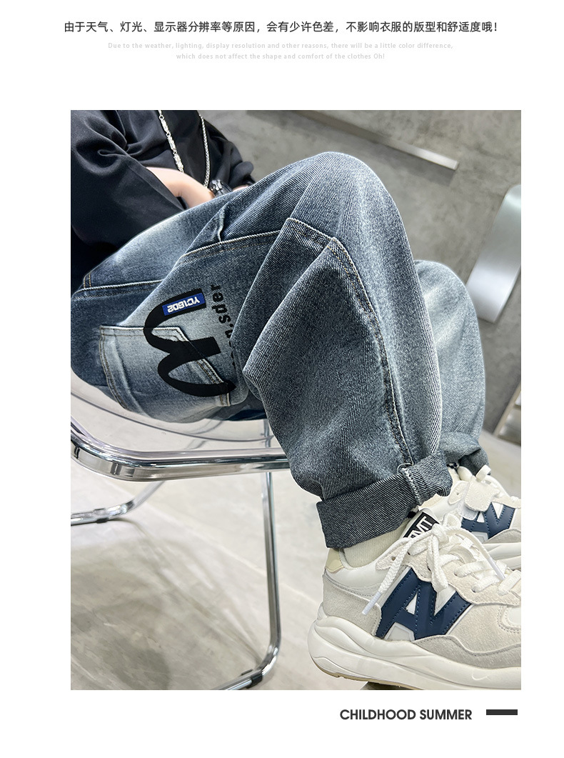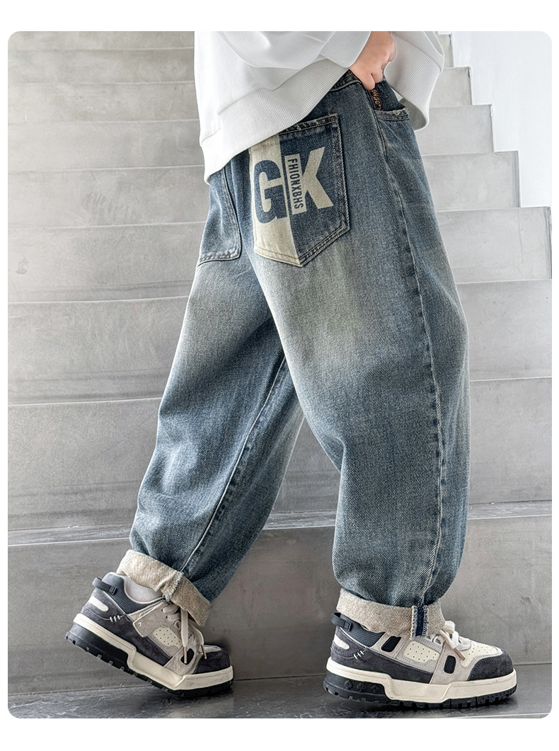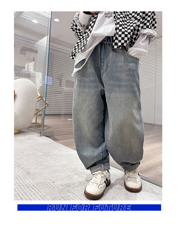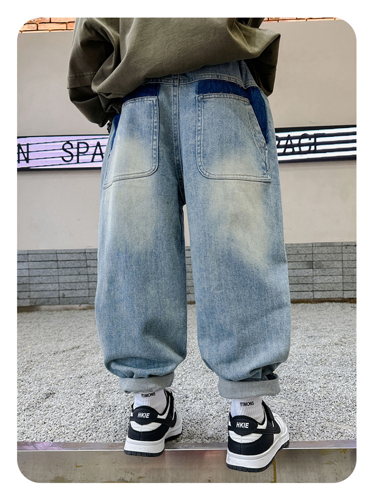 아동용 데님 팬츠 봄 가을 신상품 스트레이트 핏 부드러운 남아 바지 중대형 아동용 만화 캐릭터 봄 얇은 바지 2026 봄 남아용스토어 가기