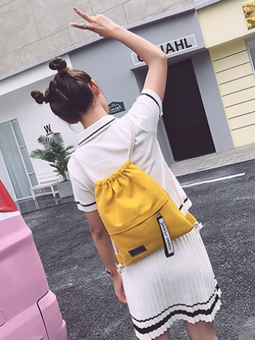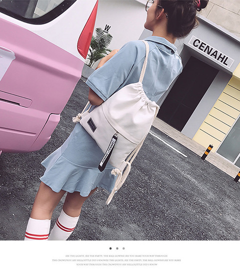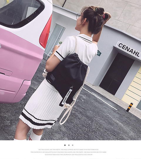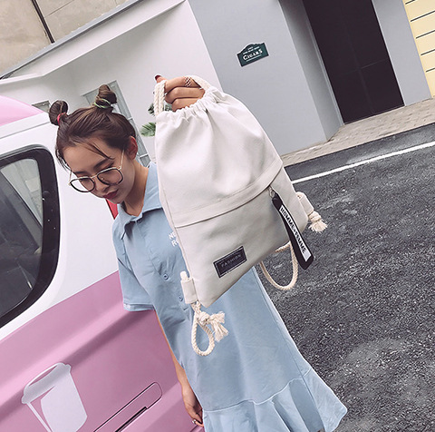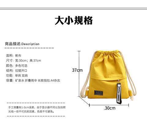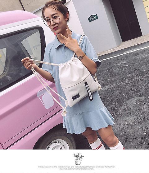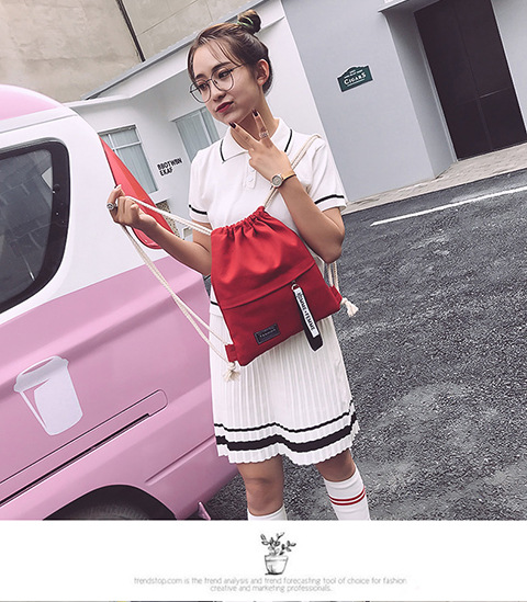 한국 스타일 2025 남녀 학생을위한 새로운 드로잉 스트링 포켓 배낭 스쿨백 경량 스포츠 캔버스 백팩 천스토어 가기