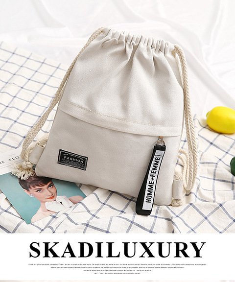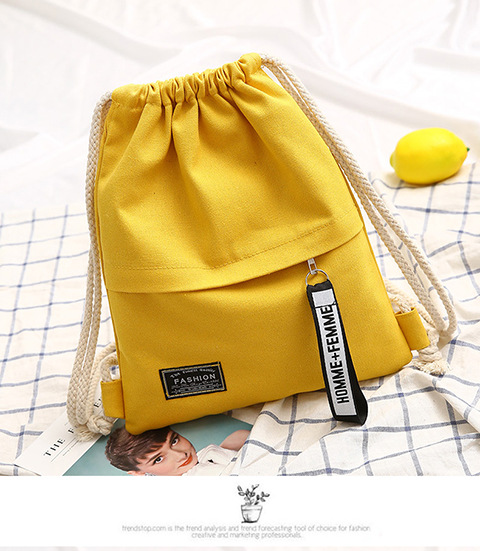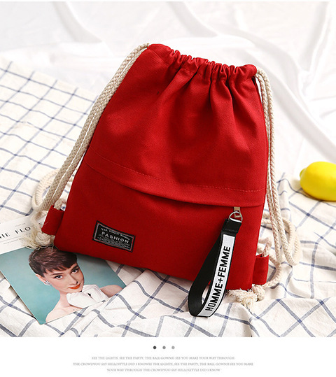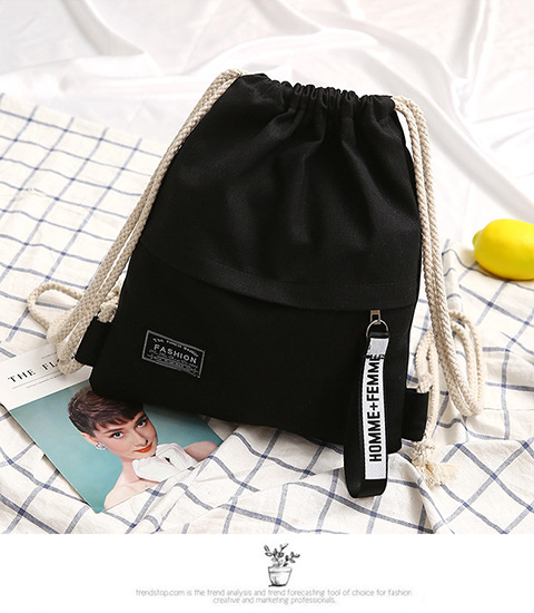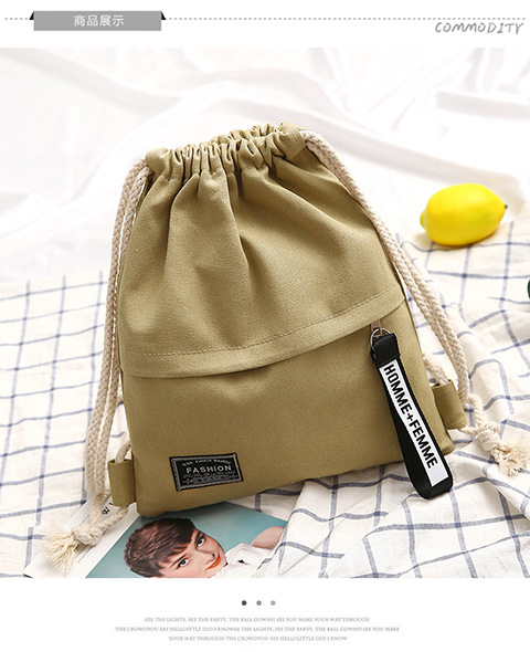 한국 스타일 2025 남녀 학생을위한 새로운 드로잉 스트링 포켓 배낭 스쿨백 경량 스포츠 캔버스 백팩 천