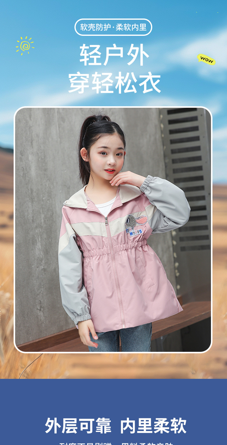 Judy Children's Wear Coat Girls 'Coat Girls 서양식 코트 대형 어린이 2025 년 봄과 가을 방풍 의상스토어 가기