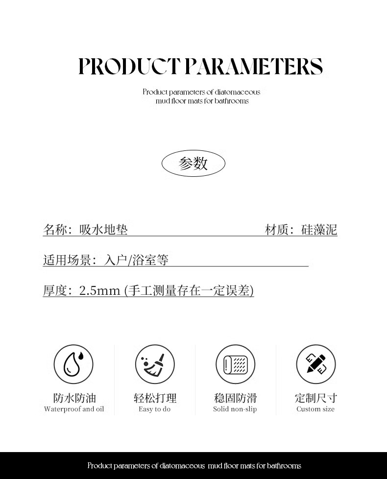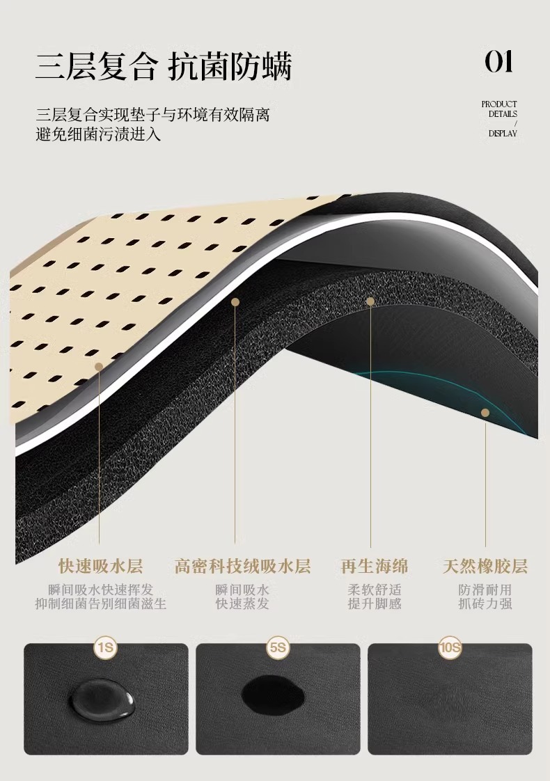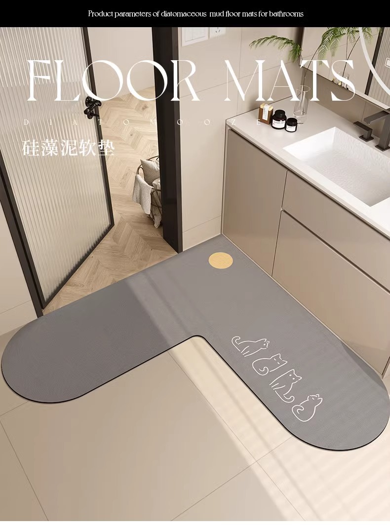 • Wangshan Huaji 규조토 진흙 바닥 매트 둥근 L자형