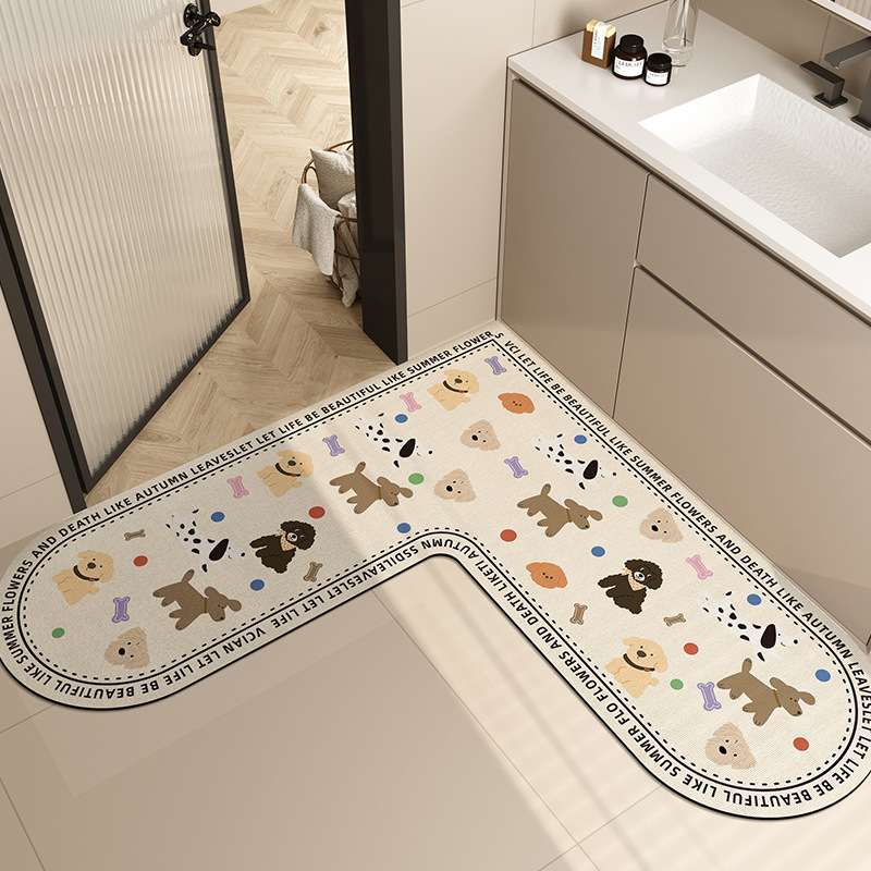 • Puppy Fun Collection 규조토 진흙 바닥 매트 - 둥근 L자형