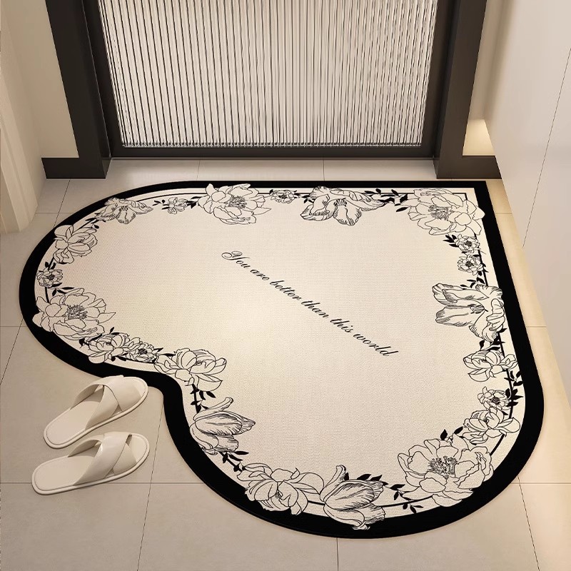 L 자형 코너 욕실 바닥 매트 하트 모양의 화장실 diatom 진흙 흡수성 빠른 건조 발 매트 화장실 문 미끄럼 방지 카펫