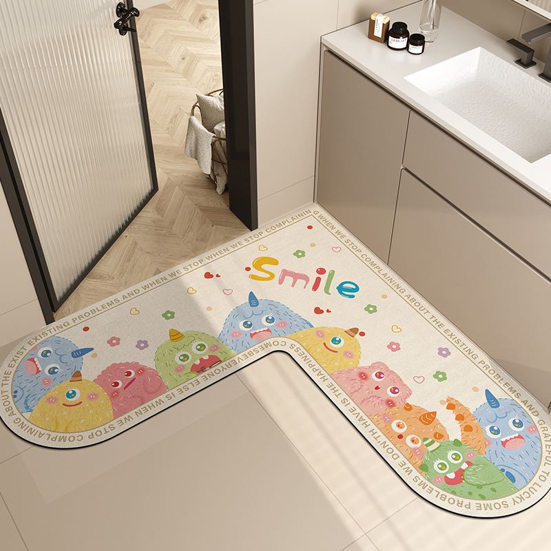 • 벨벳 리틀 몬스터 규조토 머드 플로어 매트 - 둥근 L자형