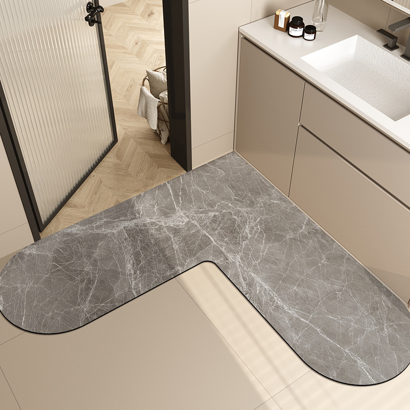 • 회색 대리석 균열 규조토 진흙 바닥 매트 둥근 L자형