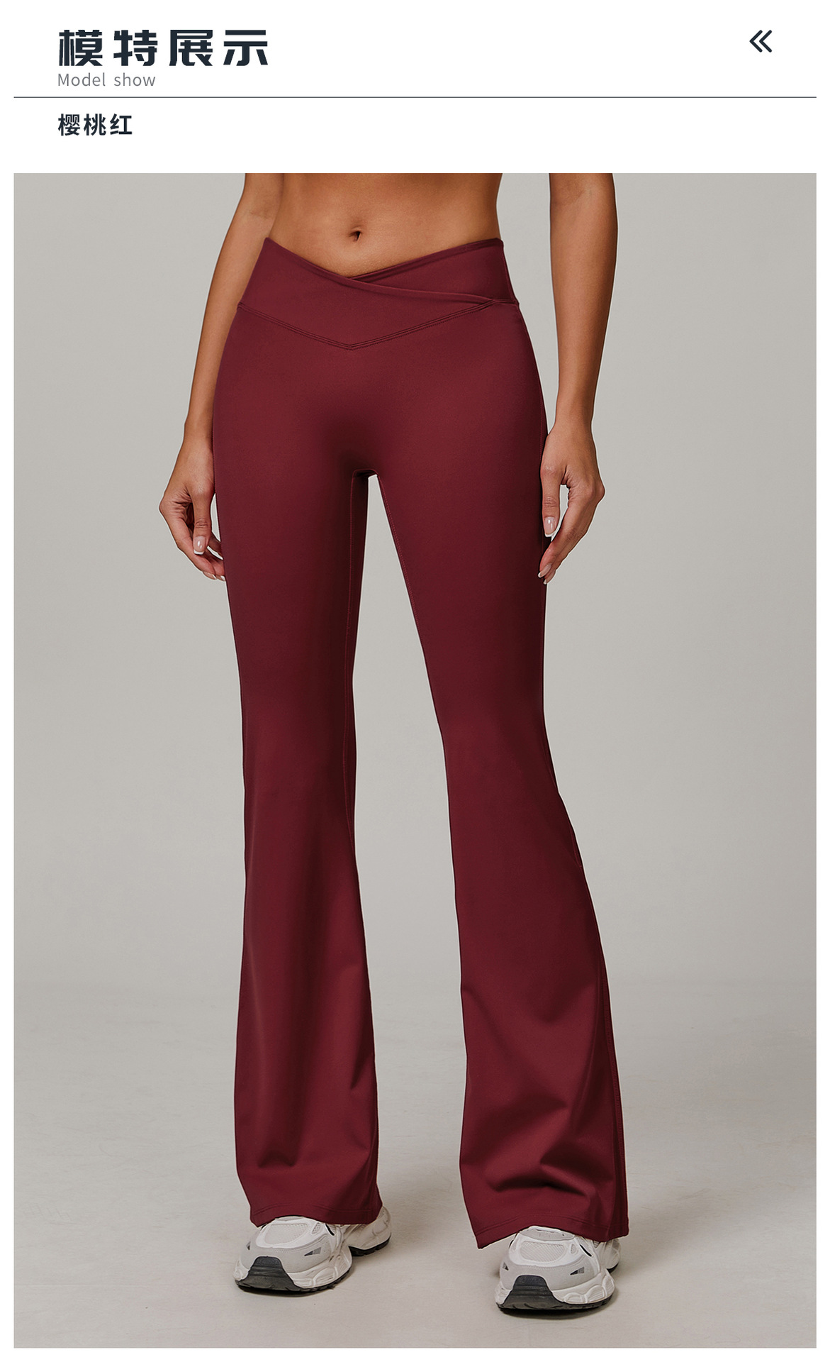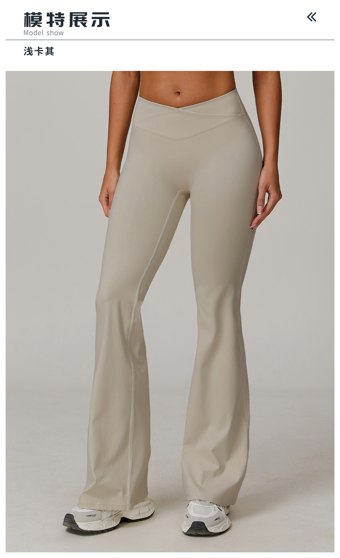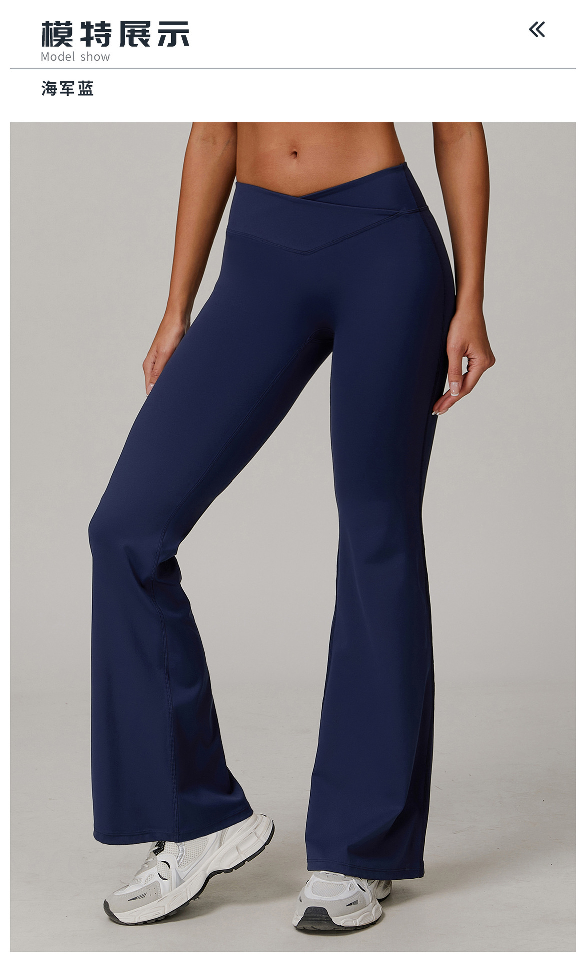 새로운 크로스보더 누드 요가 팬츠 크로스 하이웨이스트 런닝 스포츠 캐주얼 타이트 다용도 플레어 팬츠 여성용 9177