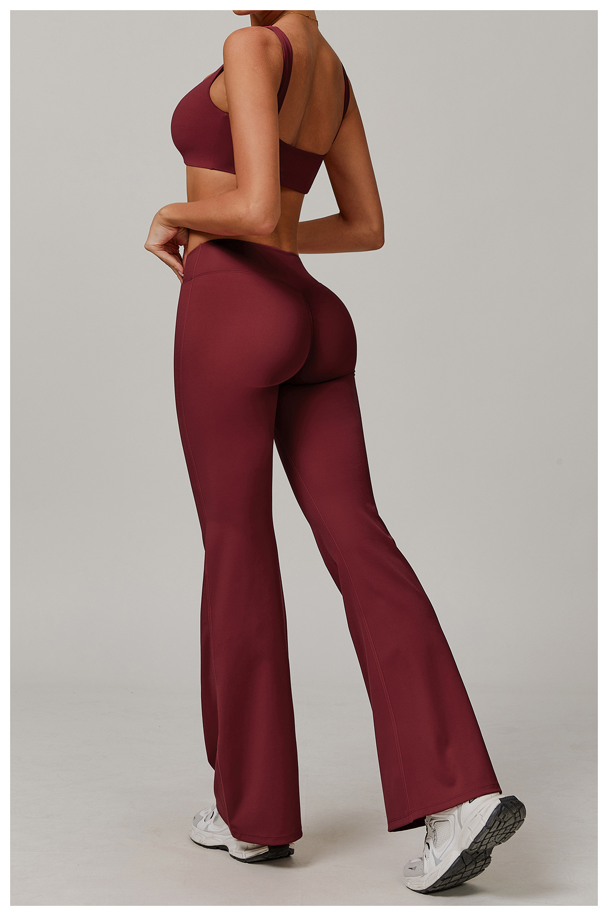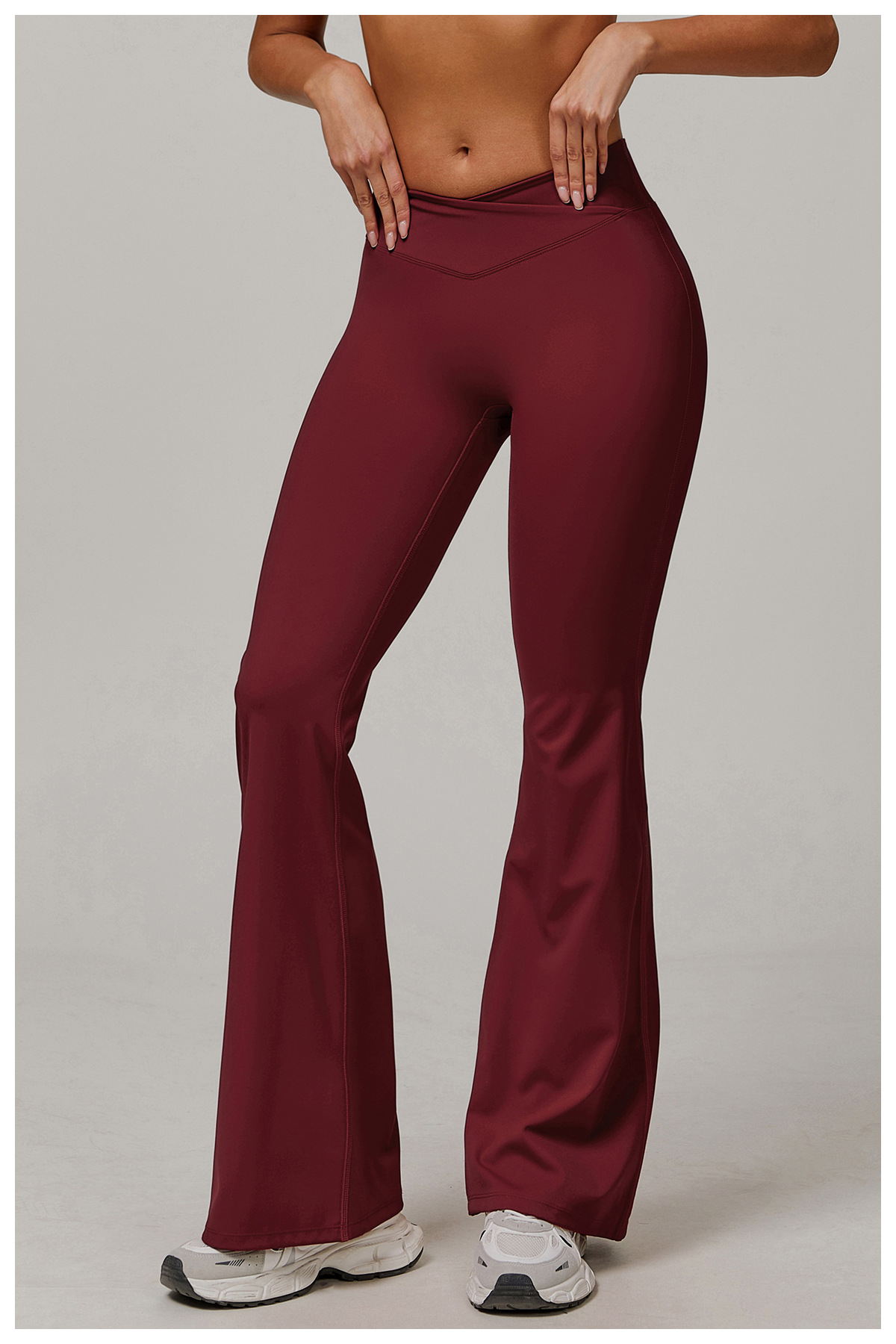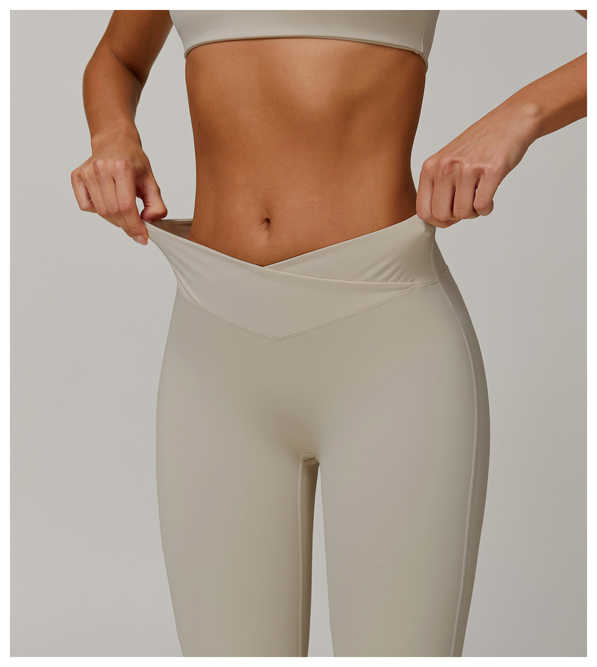 새로운 크로스보더 누드 요가 팬츠 크로스 하이웨이스트 런닝 스포츠 캐주얼 타이트 다용도 플레어 팬츠 여성용 9177