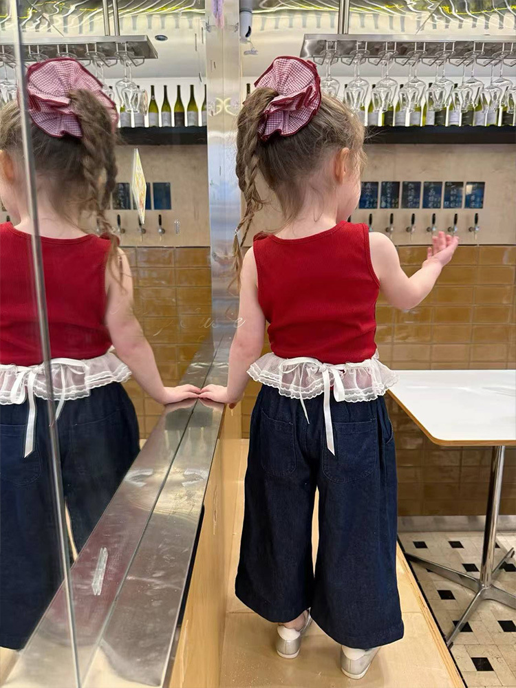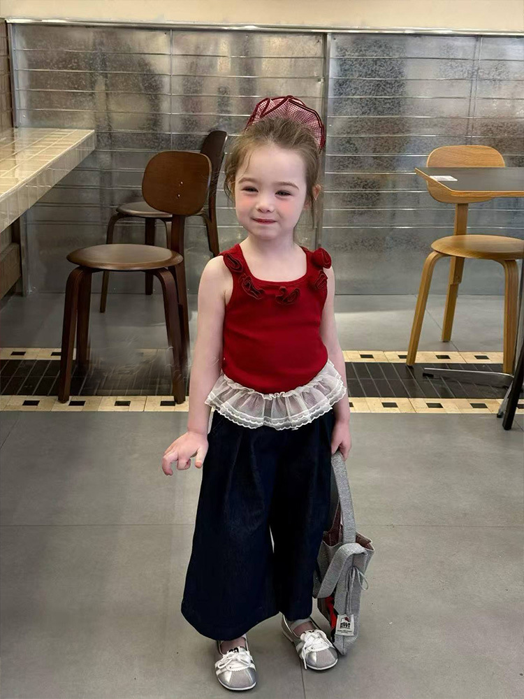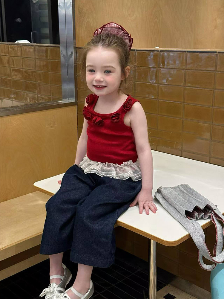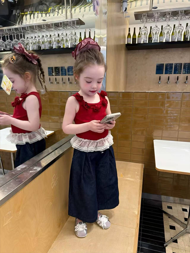 한국 소녀의 우아한 입체 꽃 조끼 2025 여름 아기 소녀의 새로운 달콤한 서양 스타일 빨간 카미솔 셔츠스토어 가기