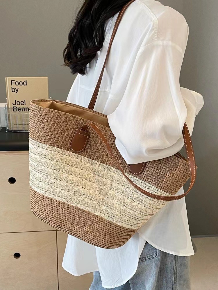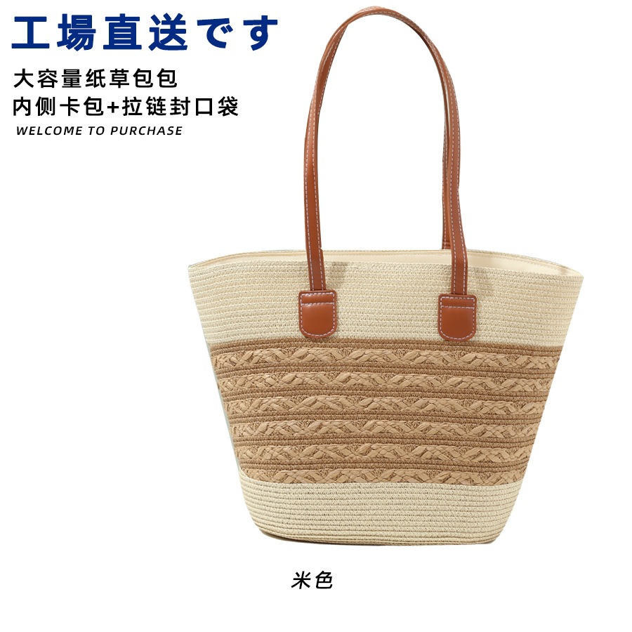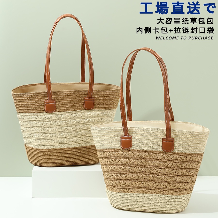 한국 홀리데이 스타일 라피 잔디 짠 가방 소녀의 여름 휴가 스타일 대용량 토트 백 인터넷 인기 숄더 백스토어 가기
