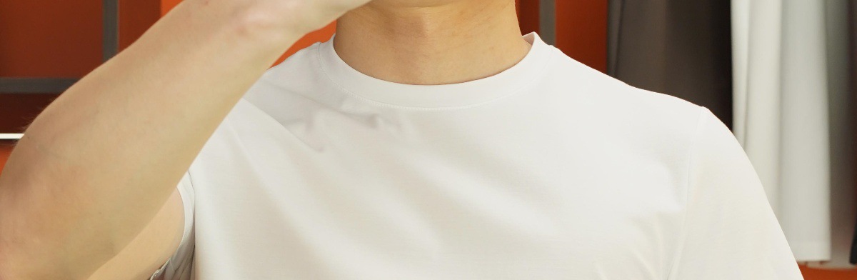 봄 새로운 뽕나무 실크 남자의 반팔 크루 넥 티셔츠 남자 진민 traceless Bottoming Top Net Edition Simple High Elastic스토어 가기