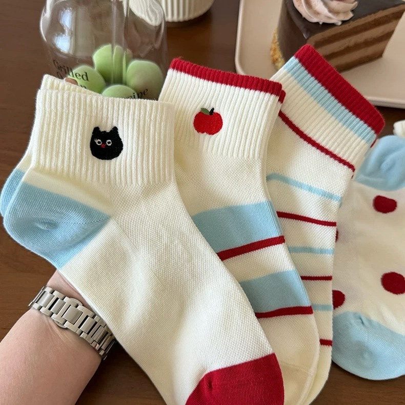 흰색 귀여운 양말 여성의 봄과 여름 모든 경기 얇은 메쉬 스포츠 양말 한국식 만화 로우 탑 쇼트 튜브 유행스토어 가기