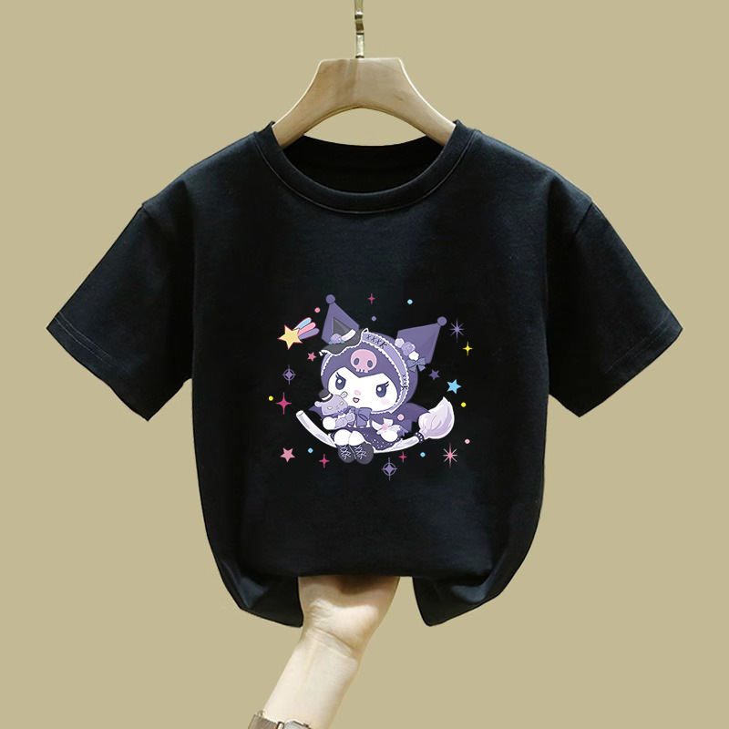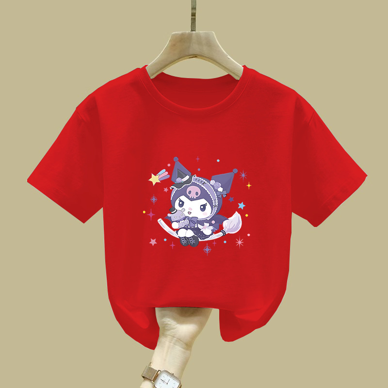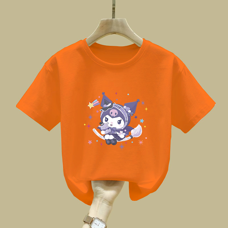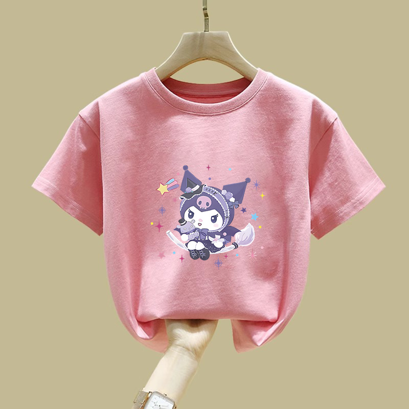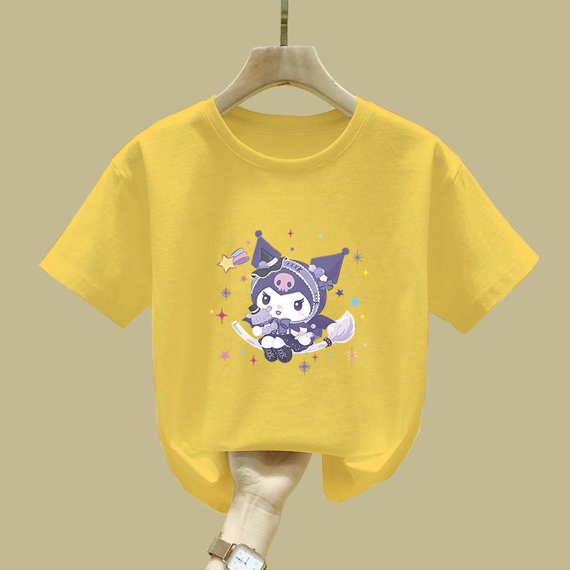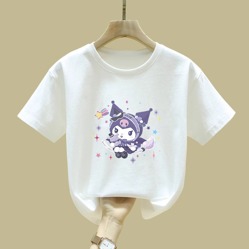 2538 # 귀여운 Kulomi 반팔 티셔츠 뉴 코튼 탑 여성 아동복 큰 어린이 느슨한 유행 여름 착용