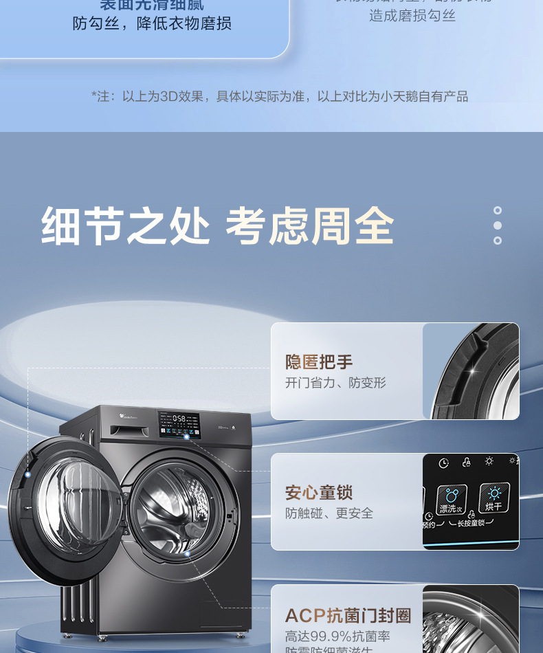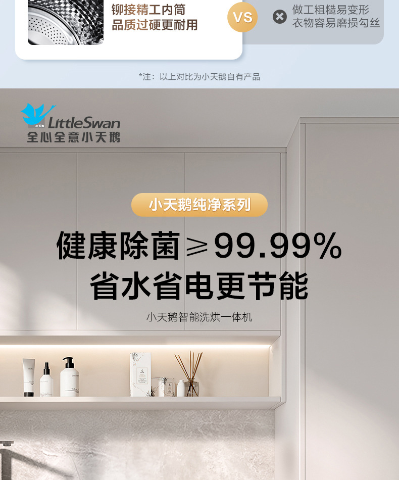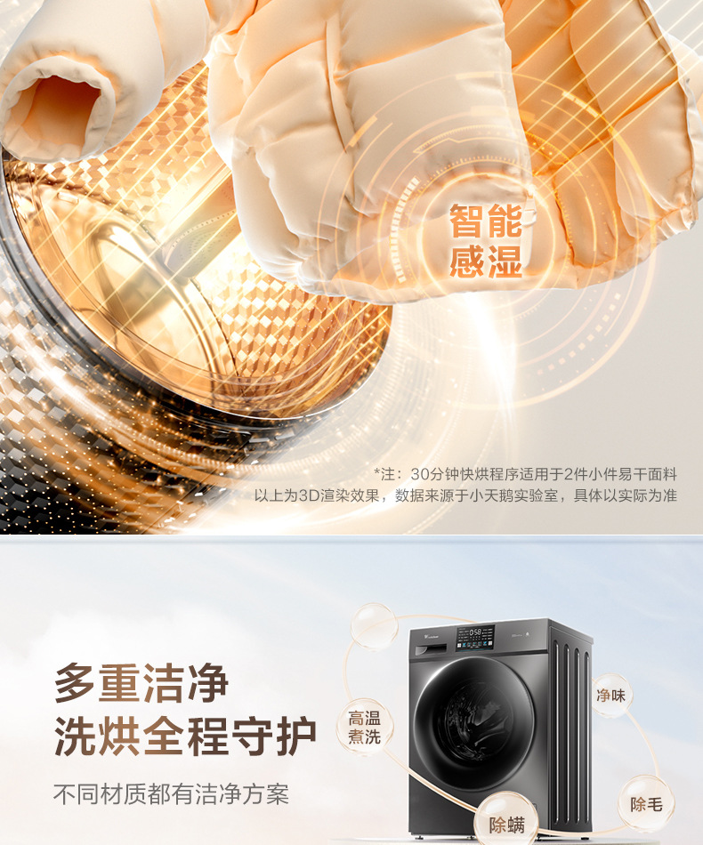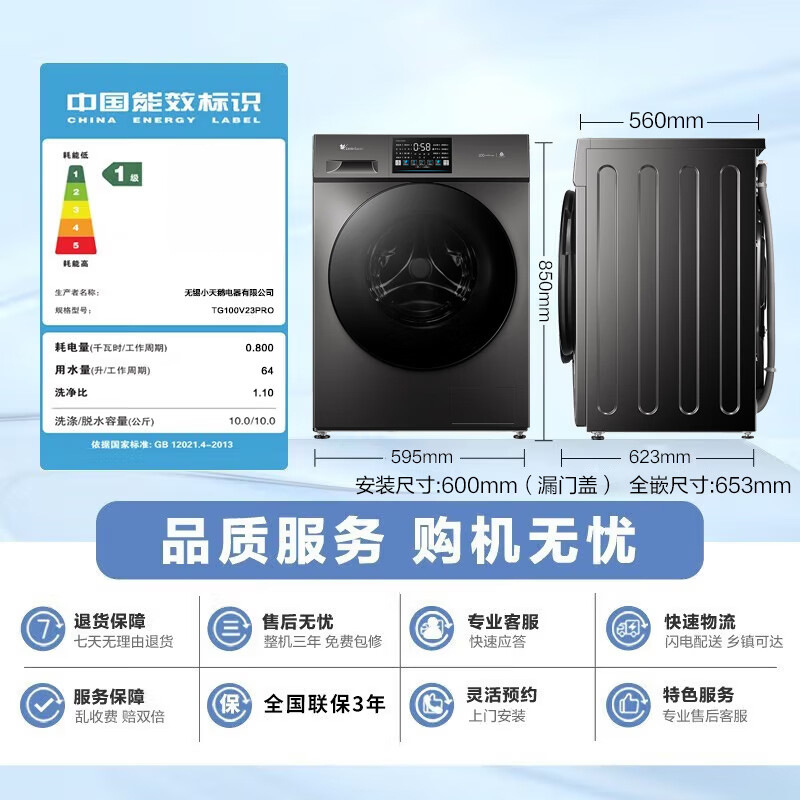 小天鹅 滚筒洗衣机 一级变频10KG除菌大容量全自动家用洗烘一体机