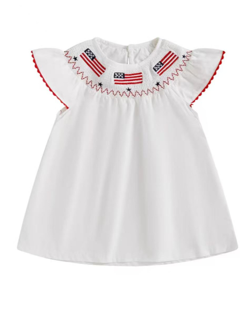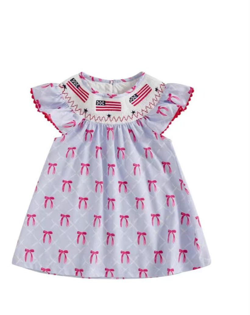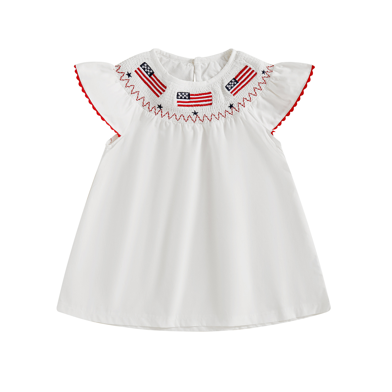 재고 있음 소녀 드레스 아동복 독립 기념일 소녀 프랑스 자수 드레스 여름 스타일 격자 무늬 스커트스토어 가기