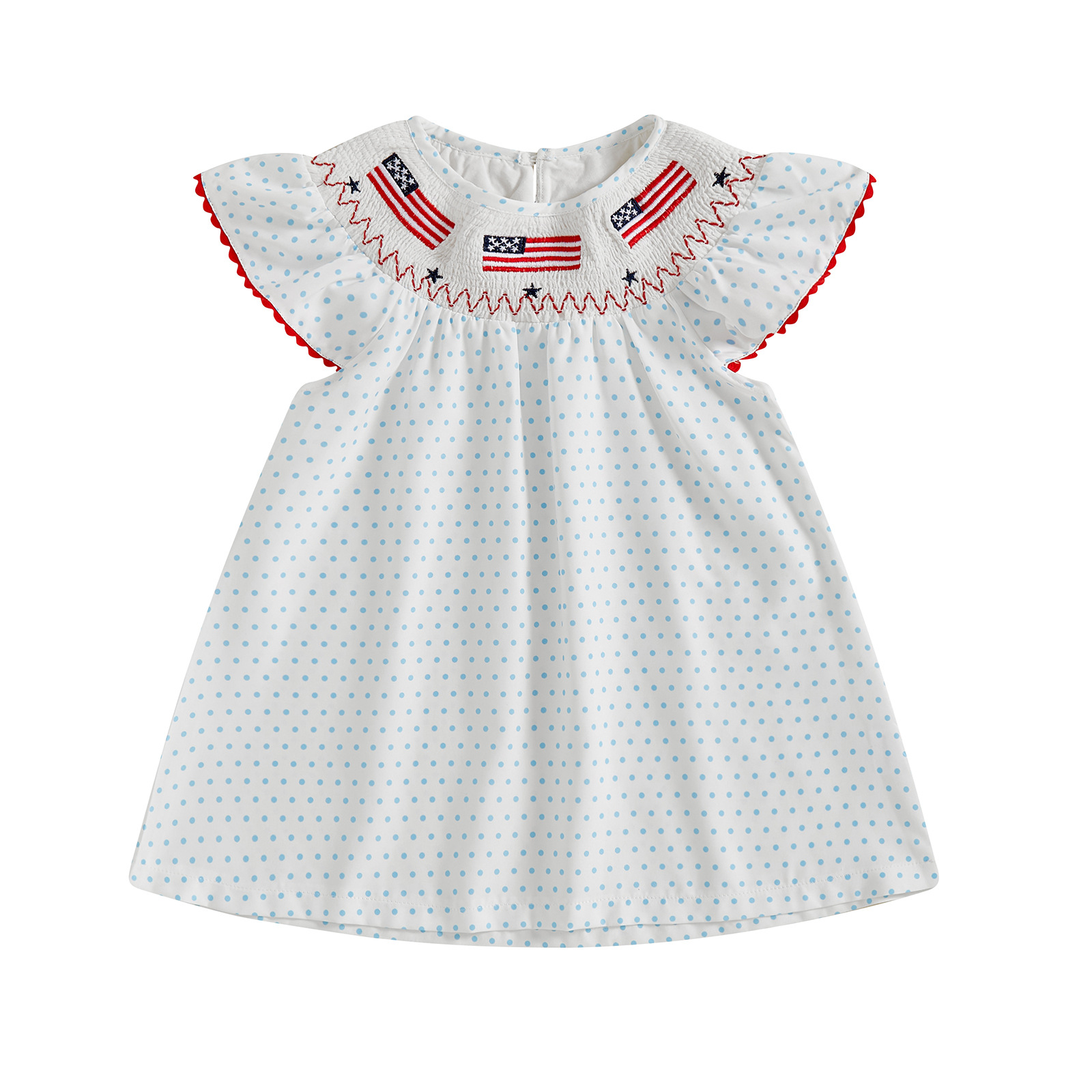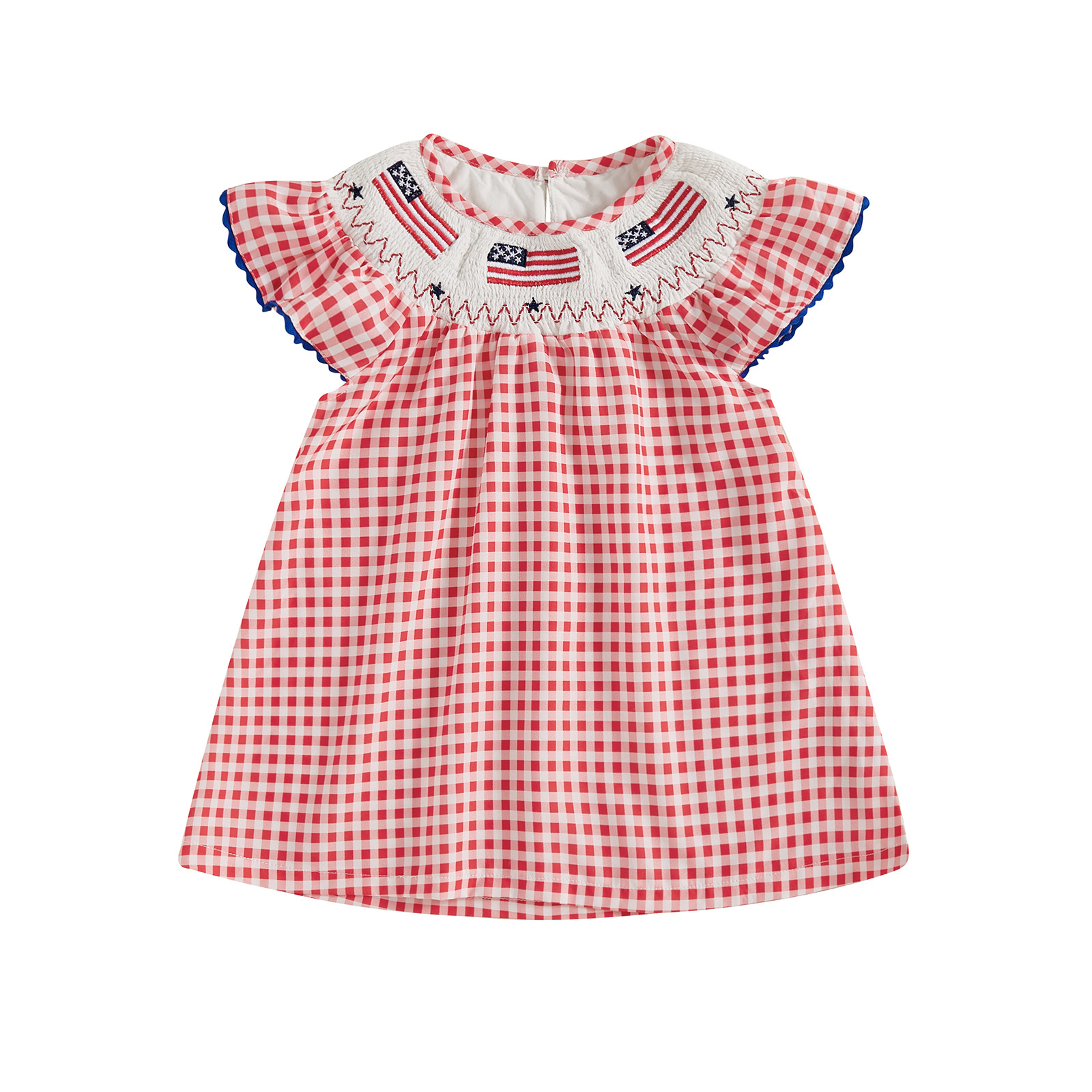 재고 있음 소녀 드레스 아동복 독립 기념일 소녀 프랑스 자수 드레스 여름 스타일 격자 무늬 스커트