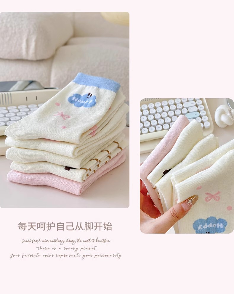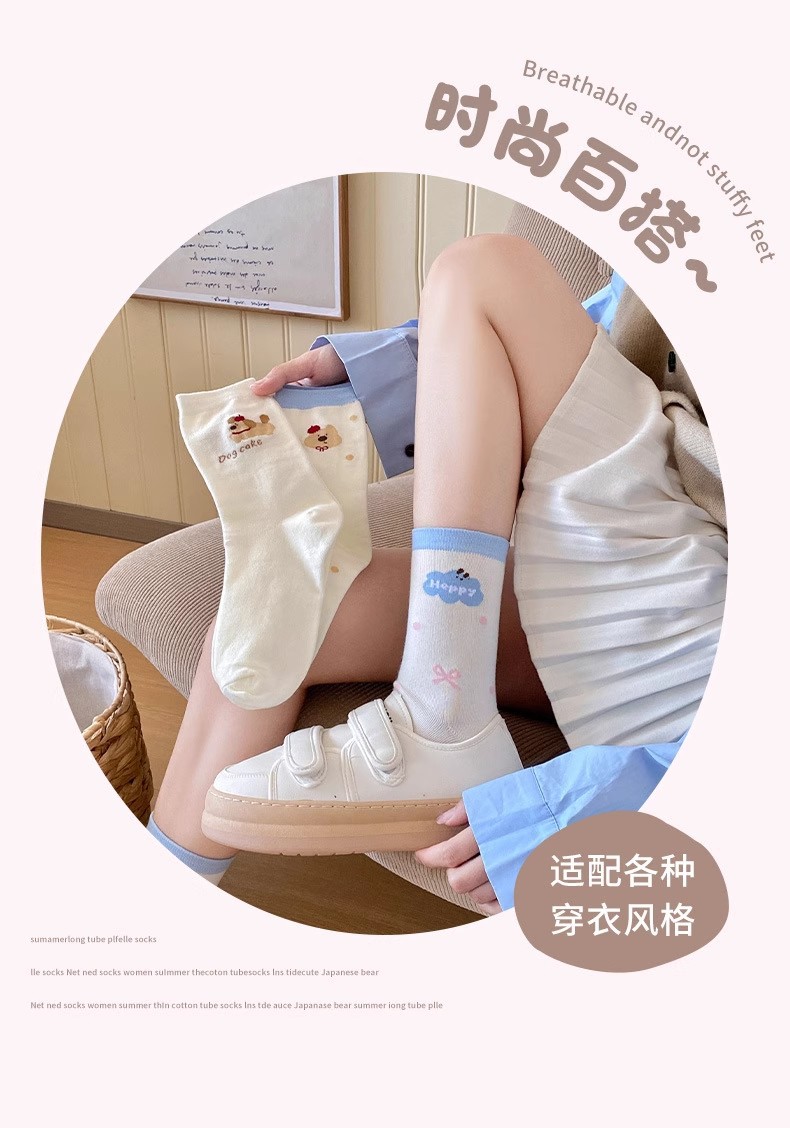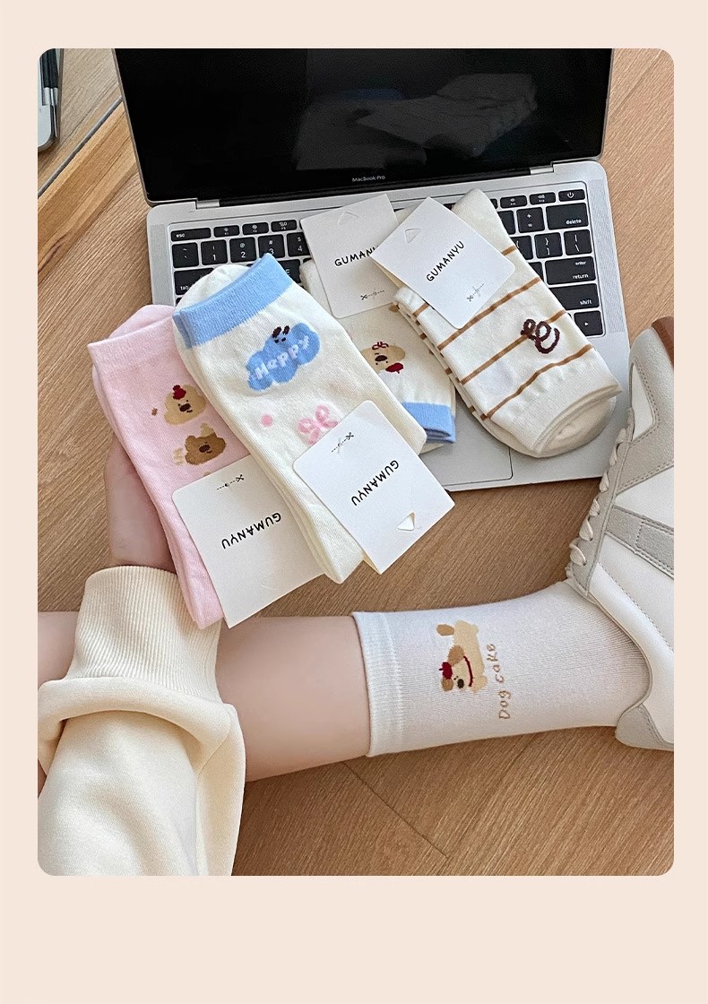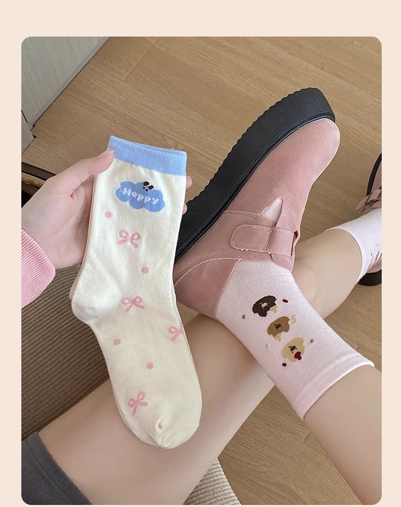 만화 양말 어린이 미드 양말 Instagram 트렌디 한 봄과 여름 새로운 일본 스타일 귀여운 대학 스타일 웨이브 도트 강아지 줄무늬 양말스토어 가기