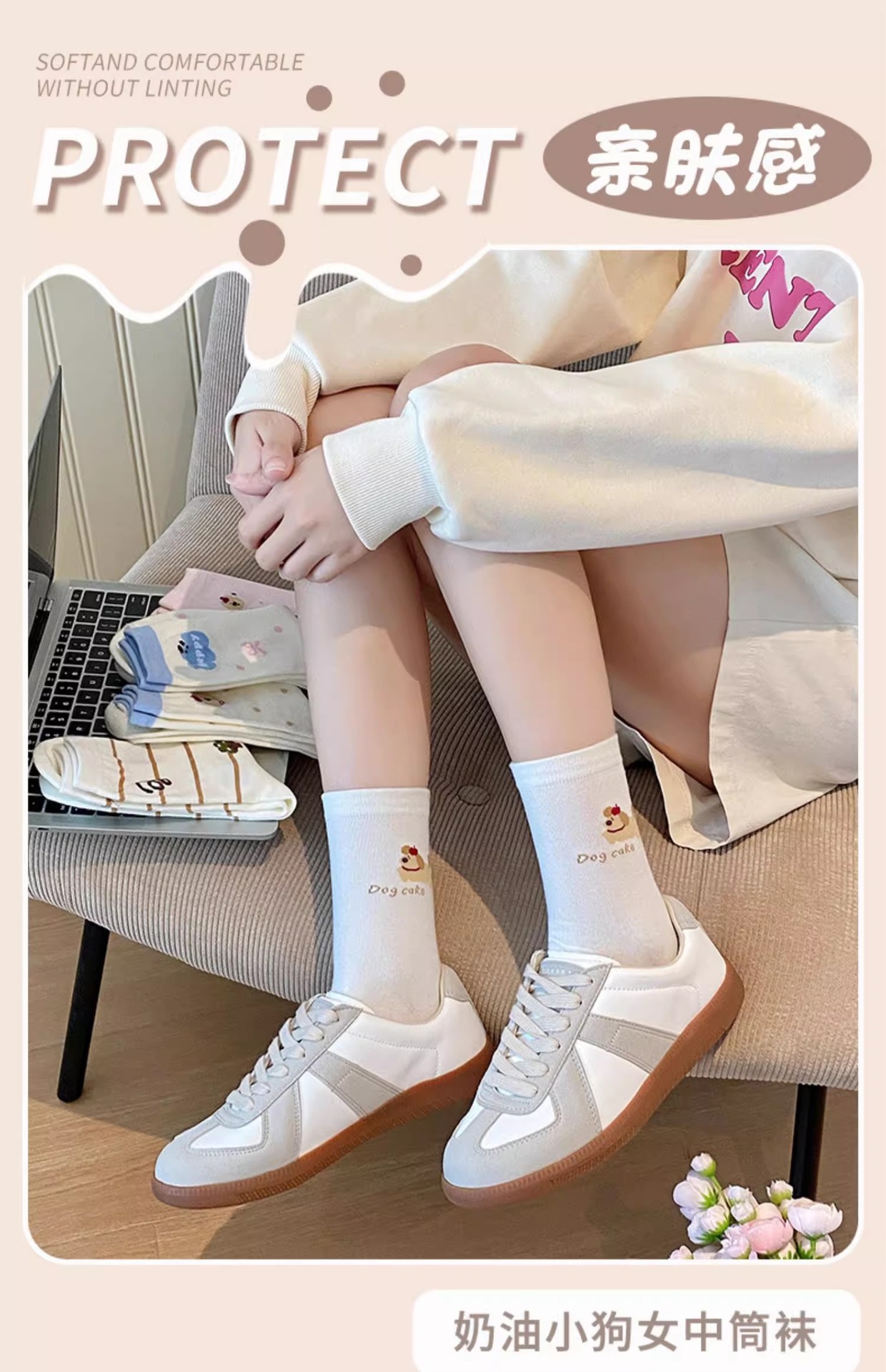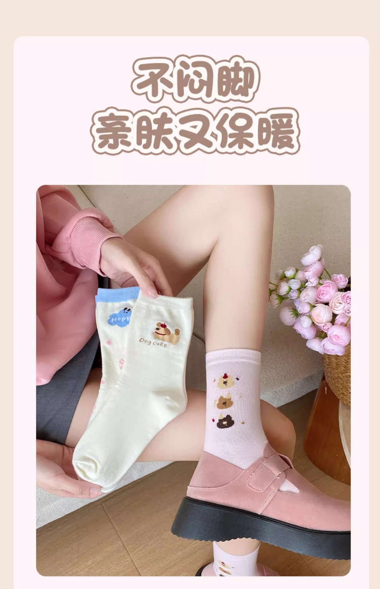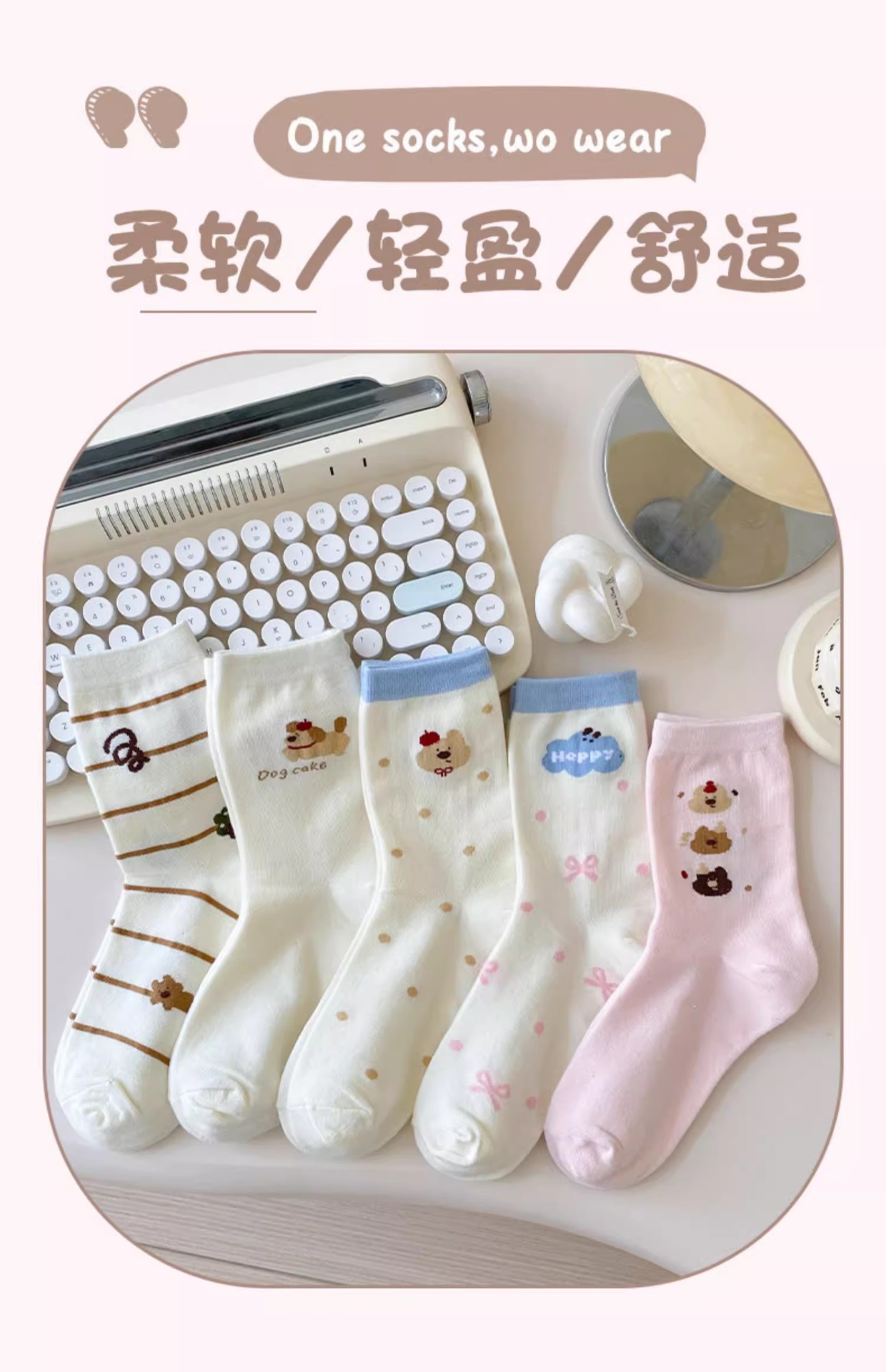 만화 양말 어린이 미드 양말 Instagram 트렌디 한 봄과 여름 새로운 일본 스타일 귀여운 대학 스타일 웨이브 도트 강아지 줄무늬 양말스토어 가기