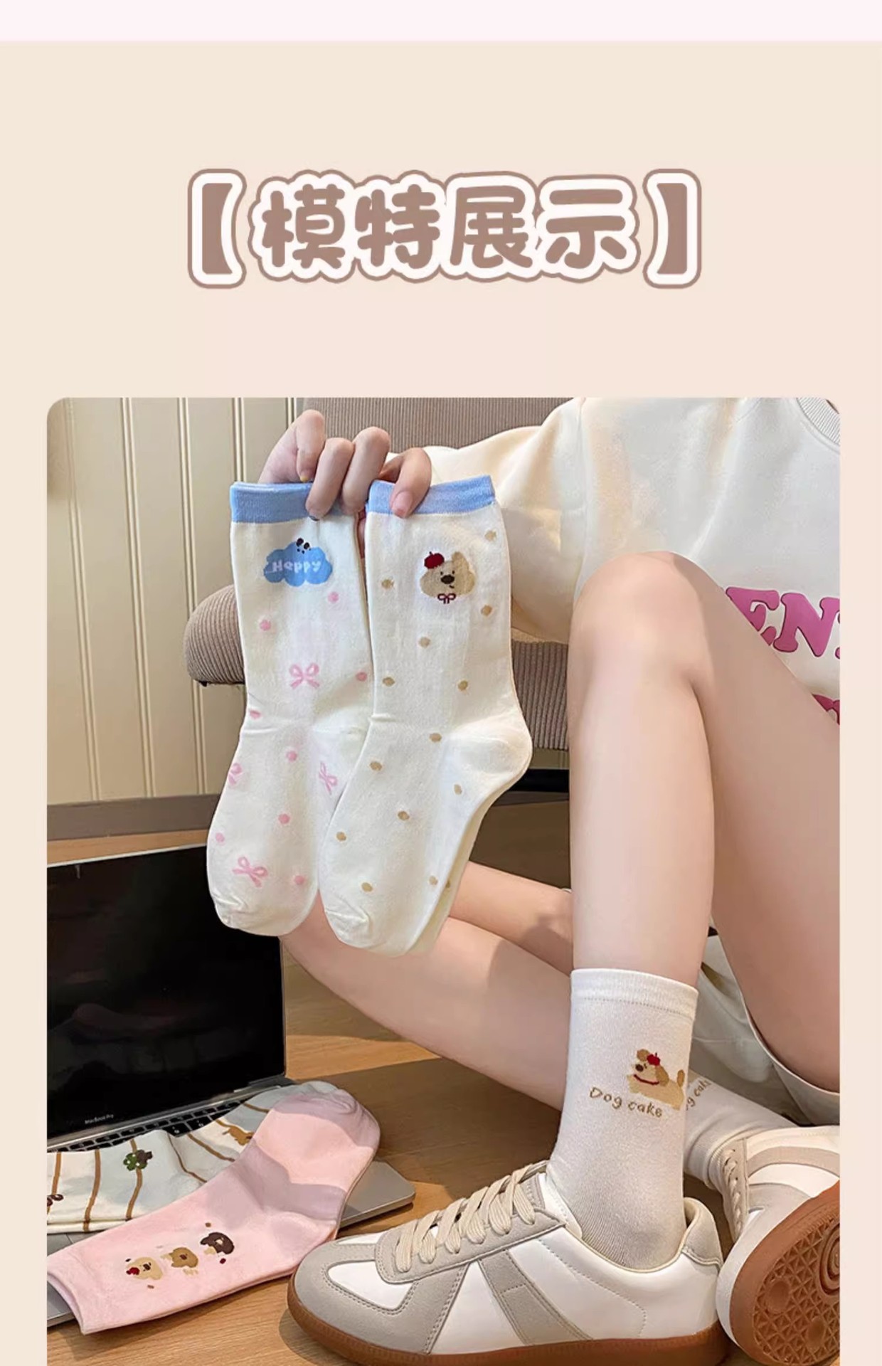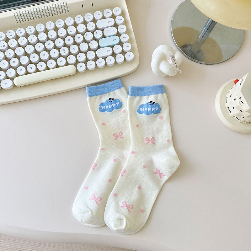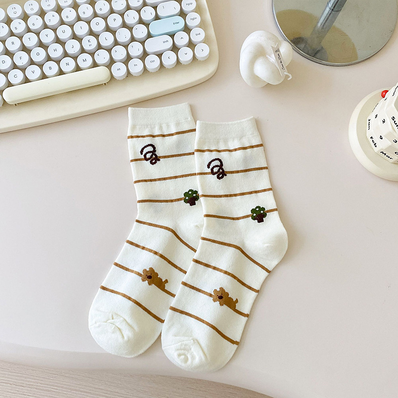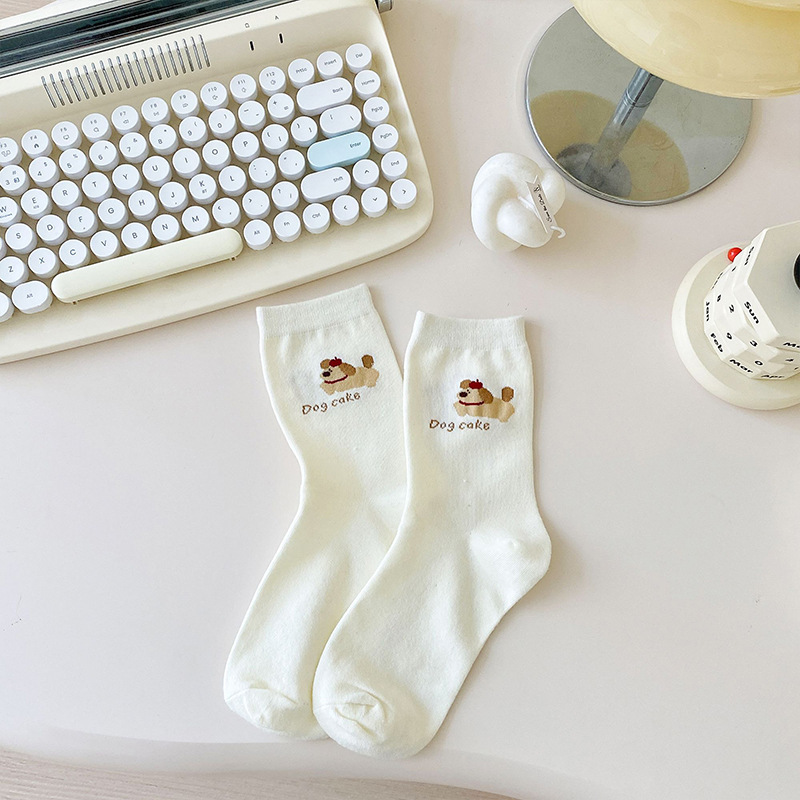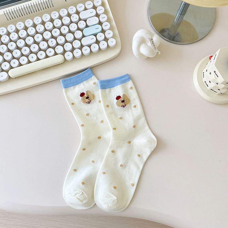 만화 양말 어린이 미드 양말 Instagram 트렌디 한 봄과 여름 새로운 일본 스타일 귀여운 대학 스타일 웨이브 도트 강아지 줄무늬 양말