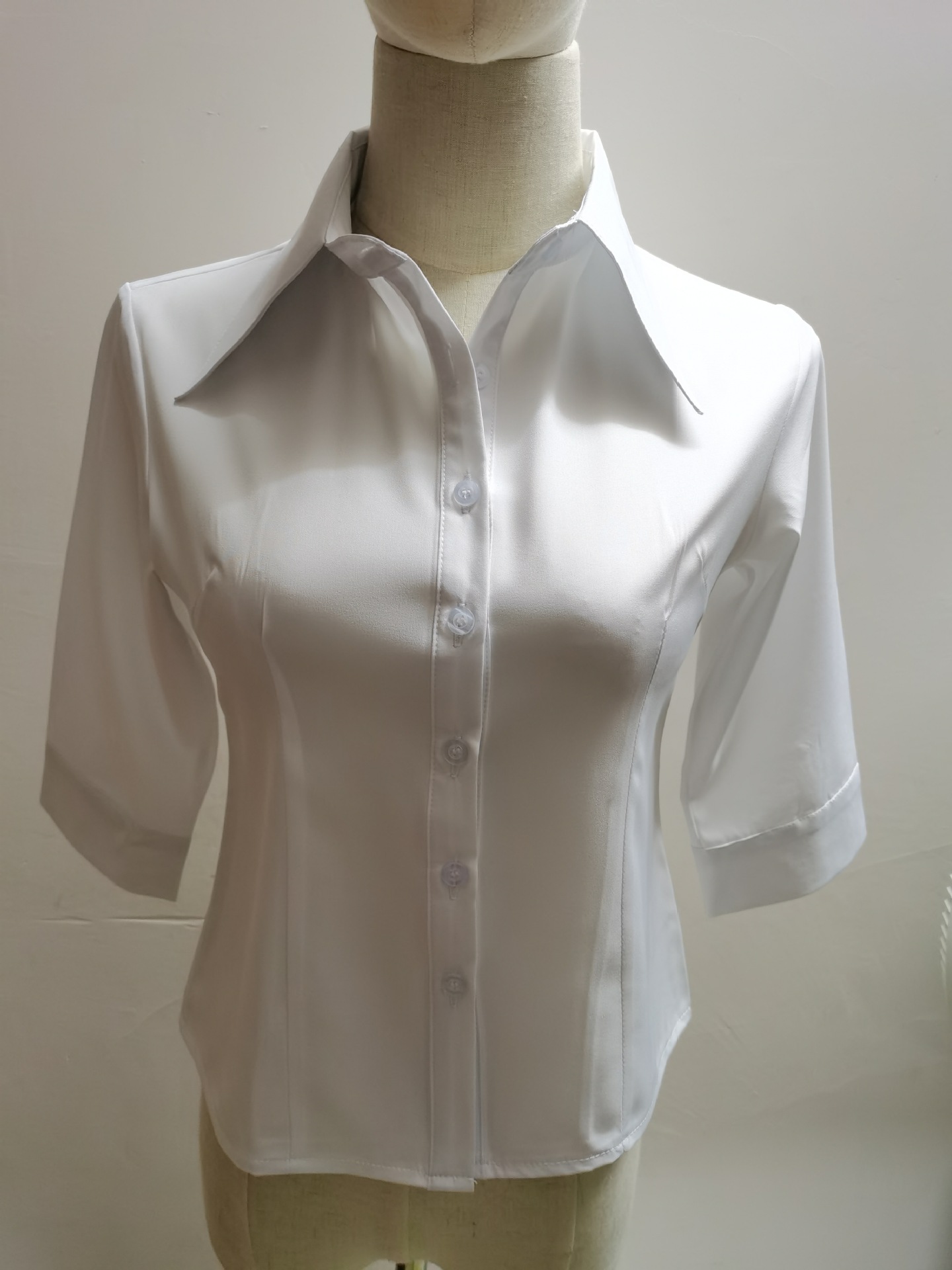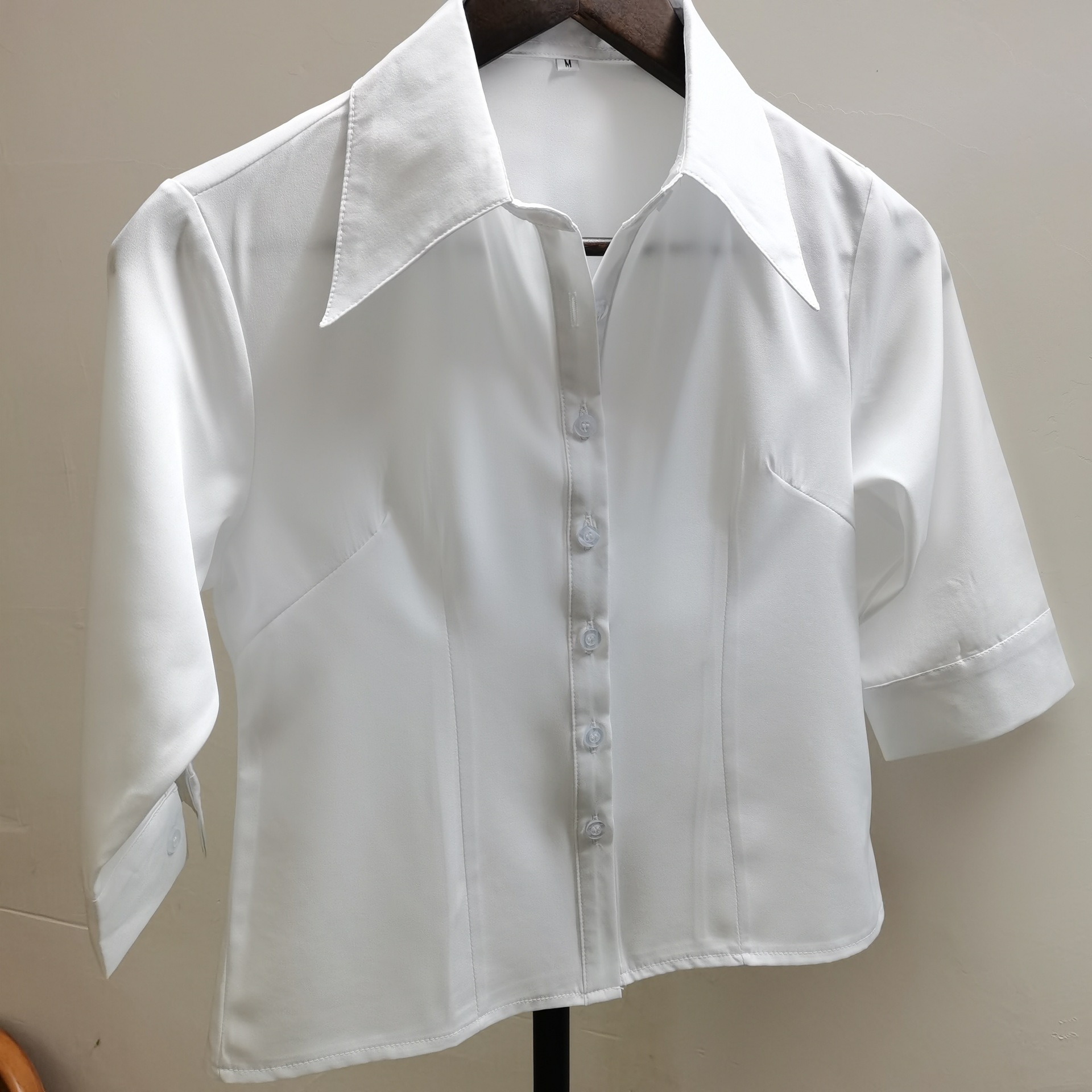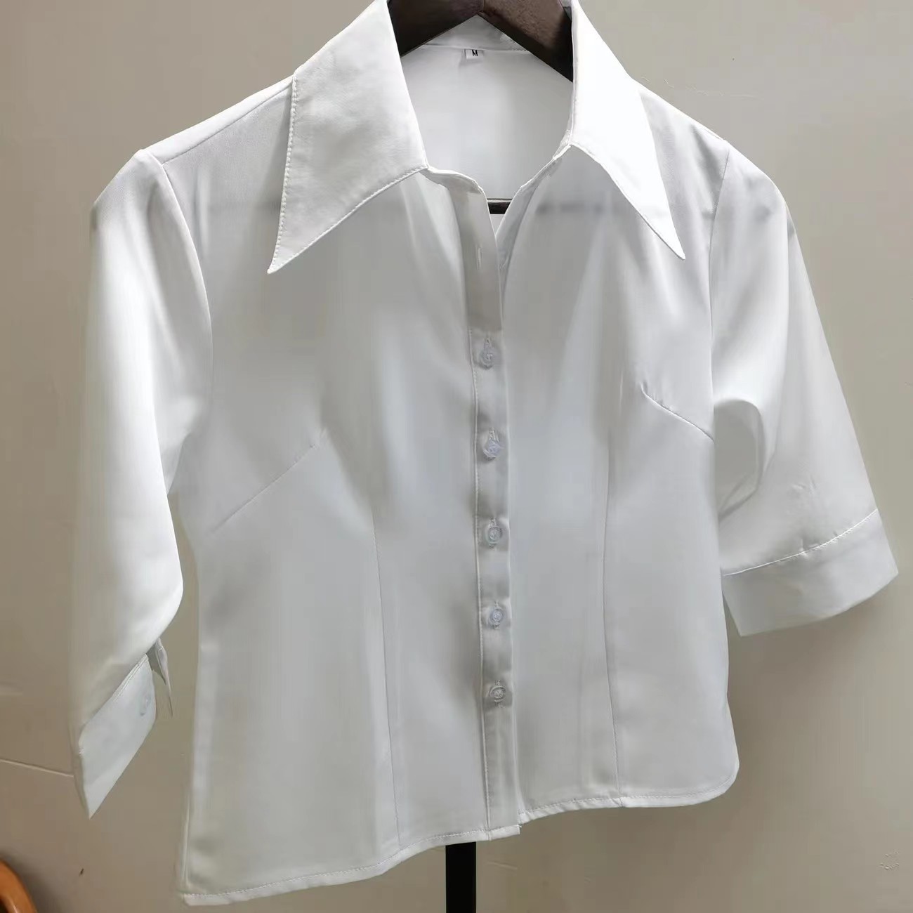 새로운 중국 스타일 짧은 슬림 핏 슬리밍 자수 구슬 여성용 셔츠 중간 소매 반소매 봄 가을과 여름