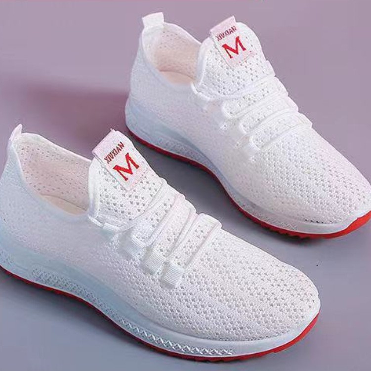 2022 여름 새로운 여성 신발 한국 패션 운동화 통기성 플라이 짠 캐주얼 러닝 신발 편안한 엄마 신발