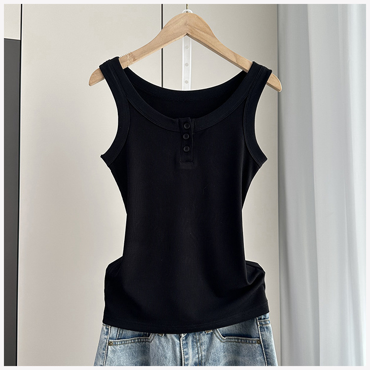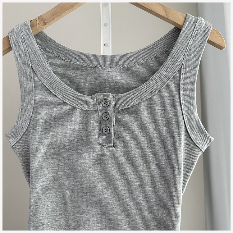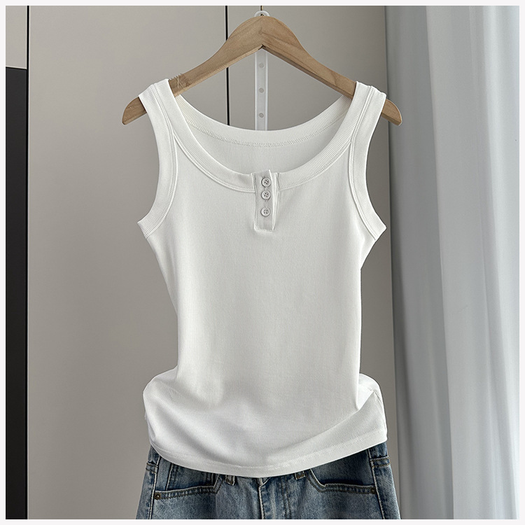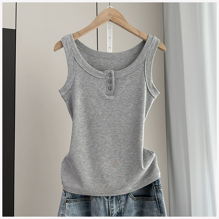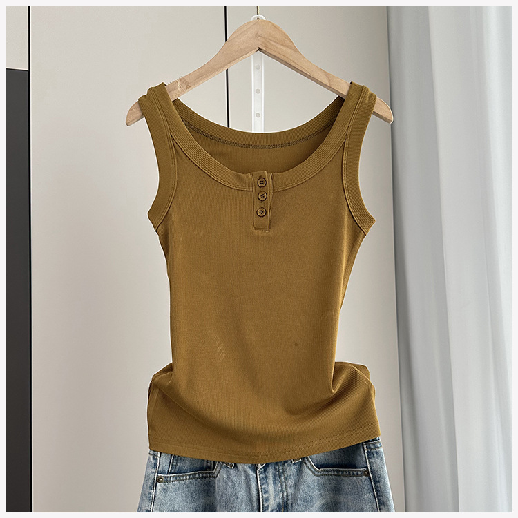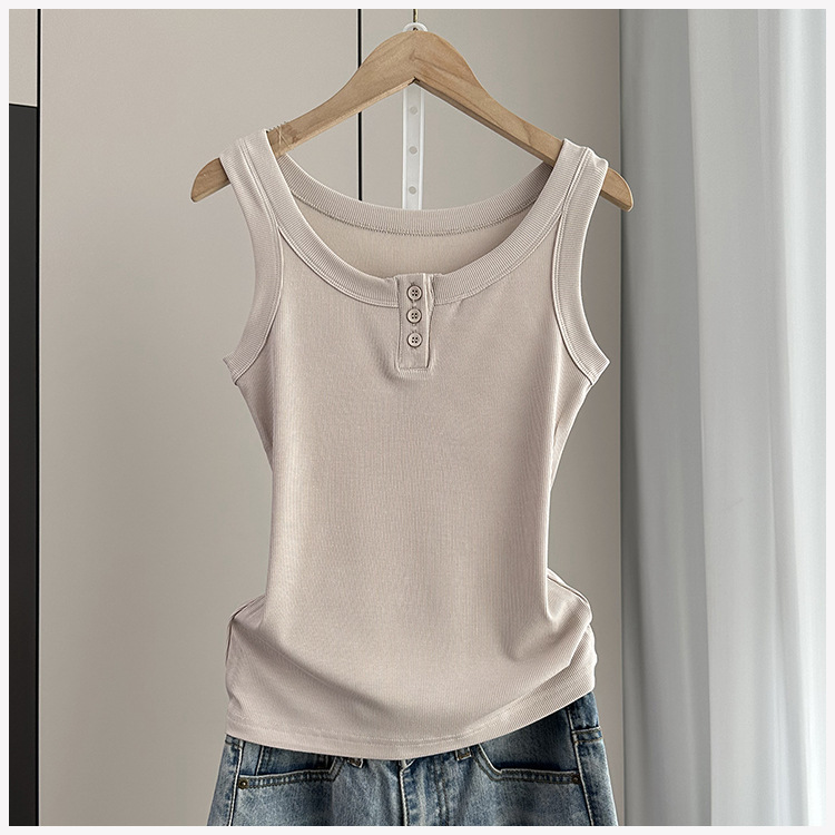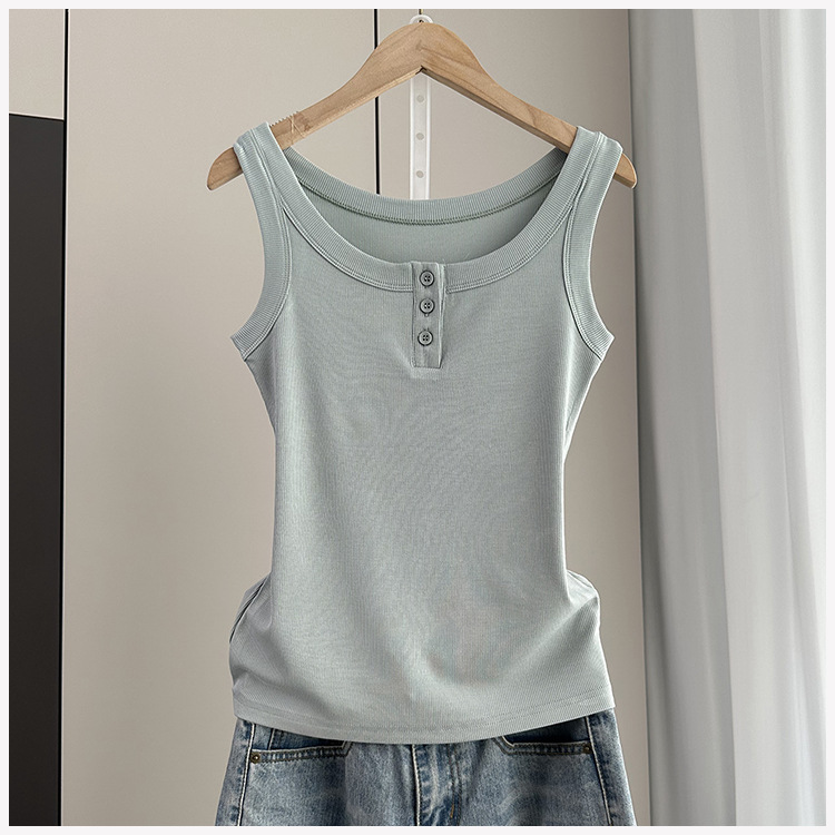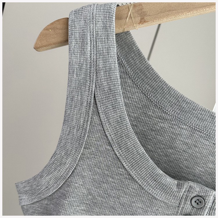 여성용 파라 가슴 카미 솔 2025 봄과 여름 새로운 스레드 슬림 핏 슬리밍 버튼 외부 착용 세트 내부 탑스토어 가기