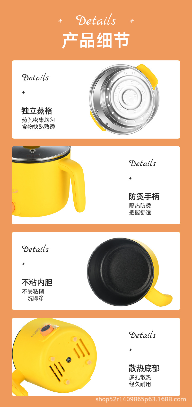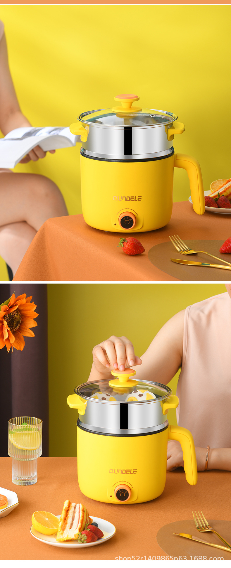 • 스테인레스 스틸 스팀 그리드가 있는 노란색
