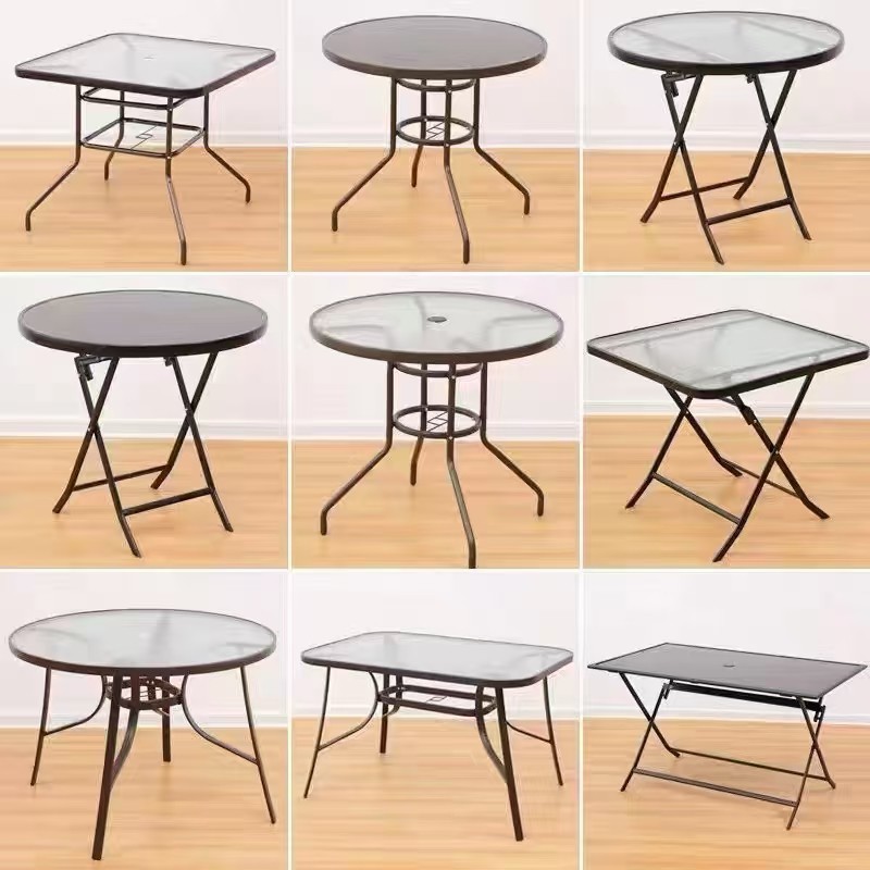 발코니 유리 테이블 야외 안뜰 레저 식사 테이블 방수 접이식 테이블 바베큐 우유 차 가게 카페 외부 테이블