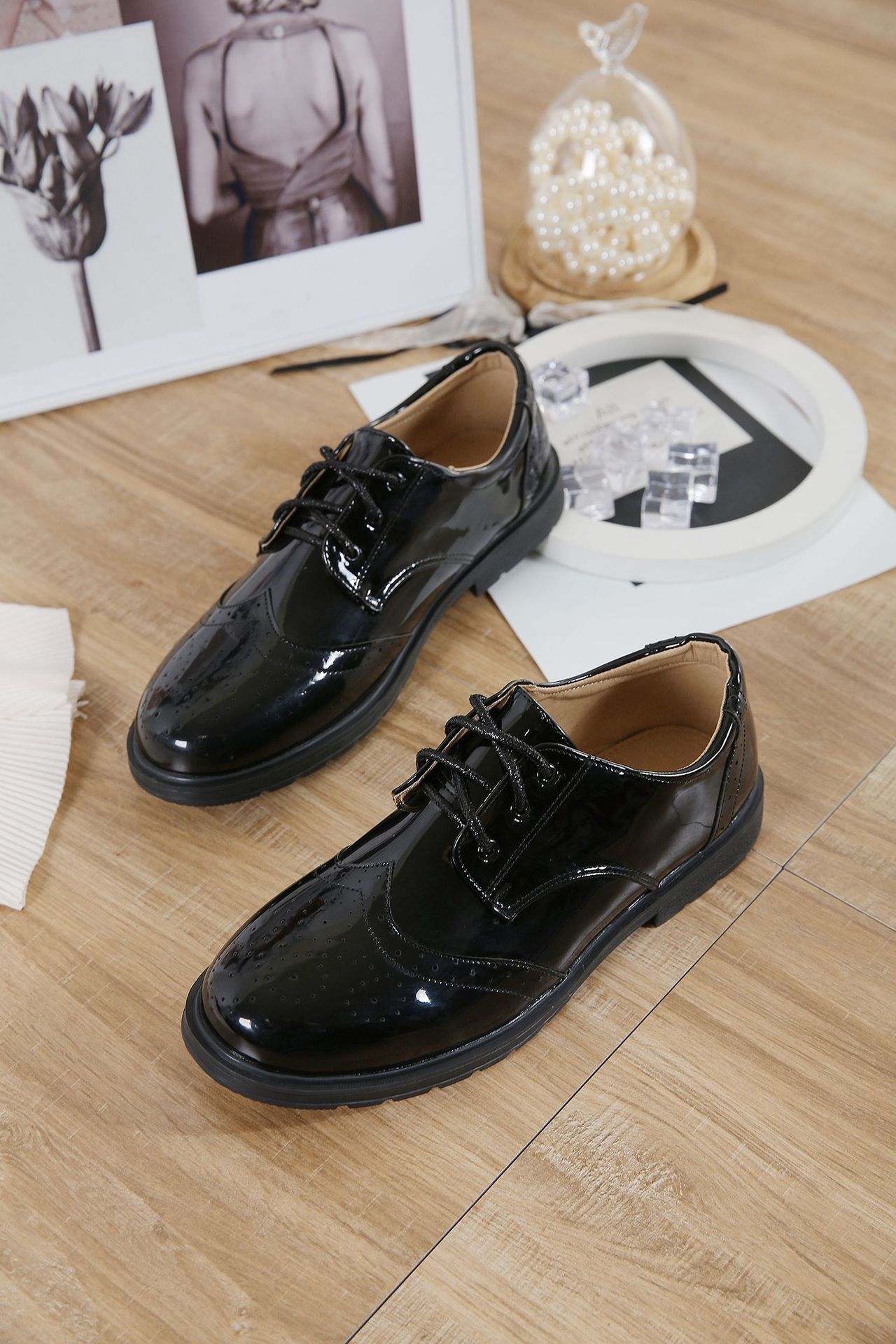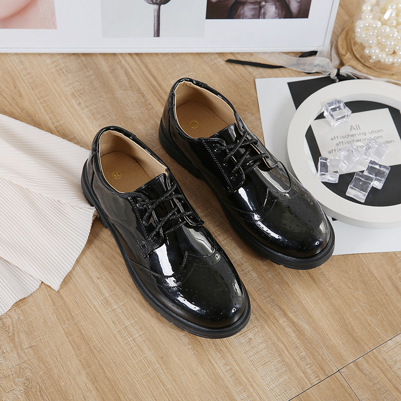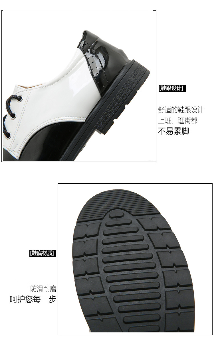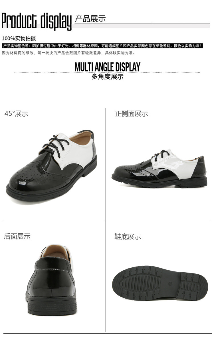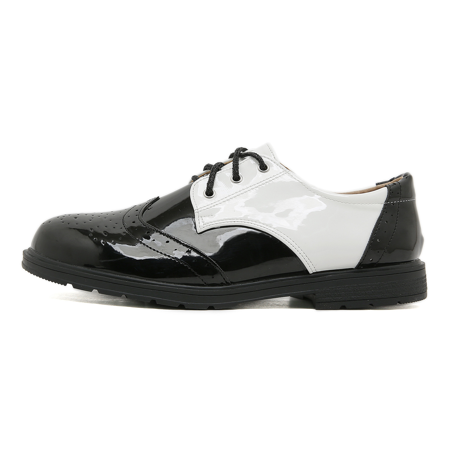 영국 스타일의 작은 가죽 신발 흑백 컬러 블록 브로그 여성 신발 조각 가죽 플랫 힐 부드러운 바닥 레이스 깊은 입 단일 신발
