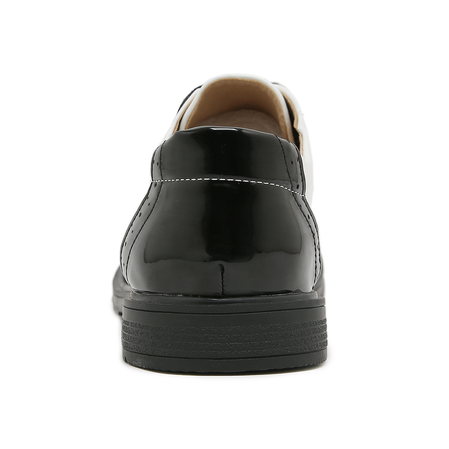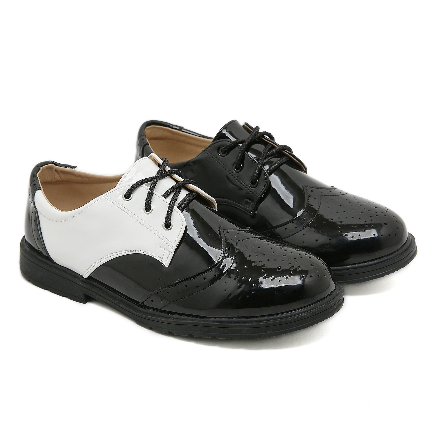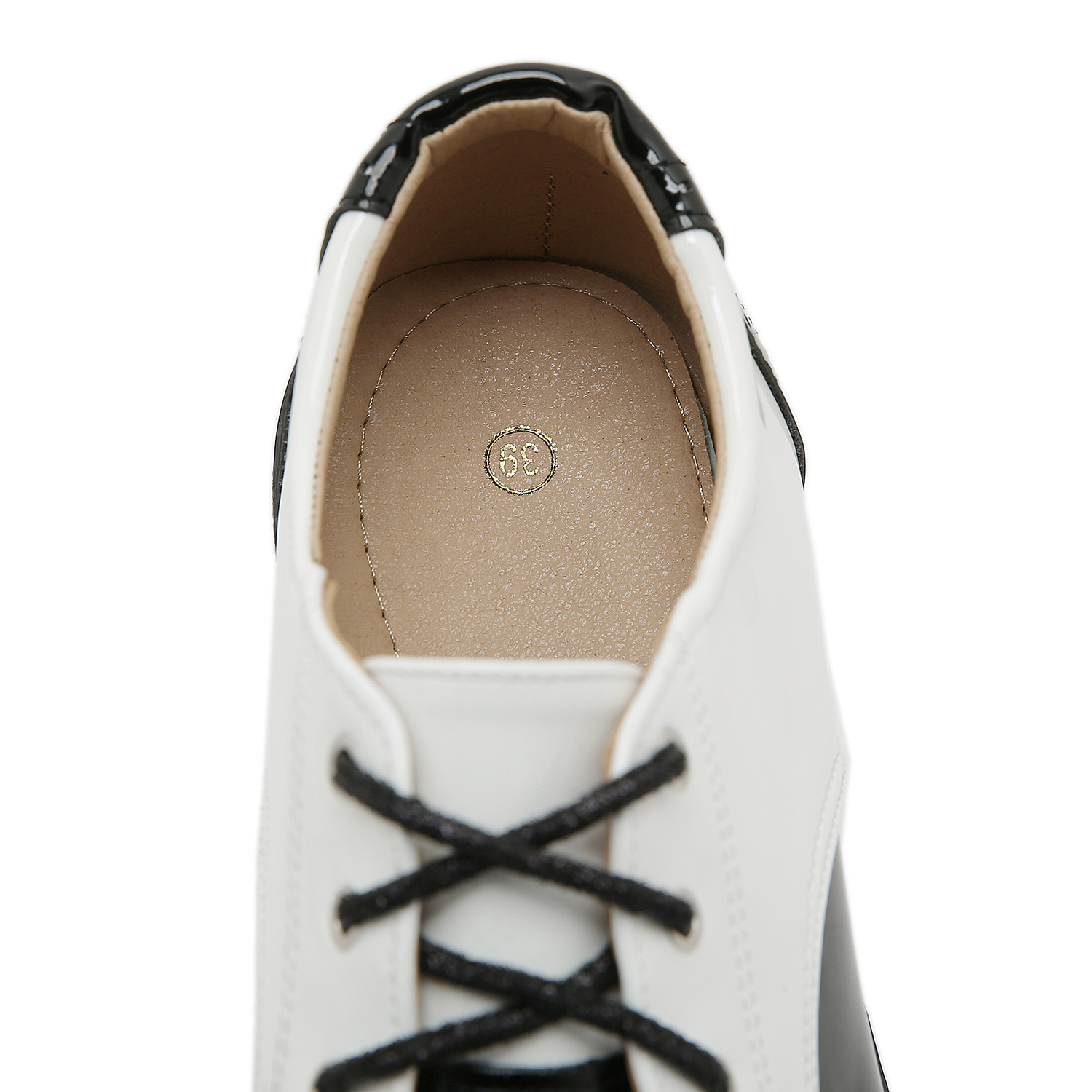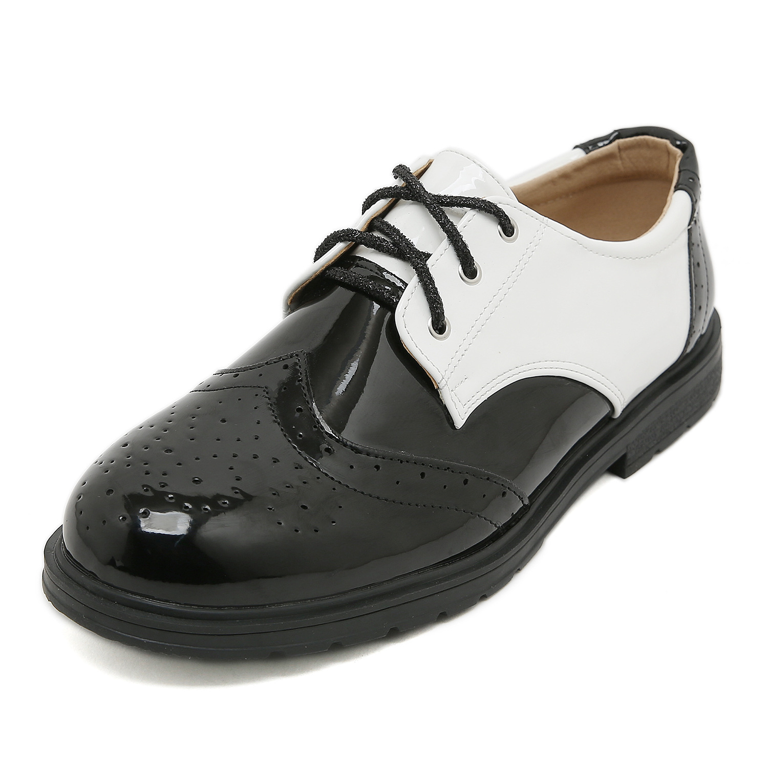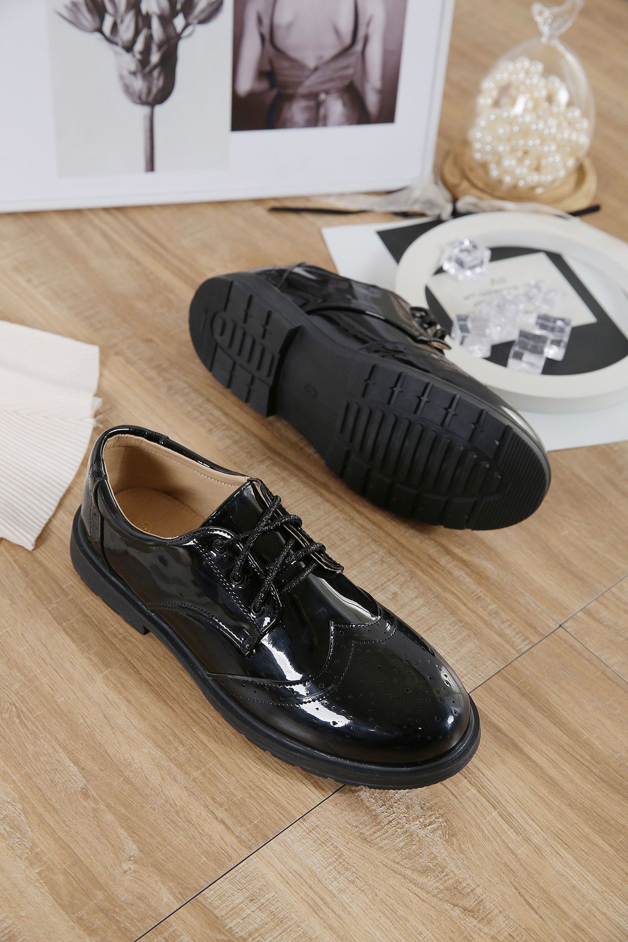영국 스타일의 작은 가죽 신발 흑백 컬러 블록 브로그 여성 신발 조각 가죽 플랫 힐 부드러운 바닥 레이스 깊은 입 단일 신발