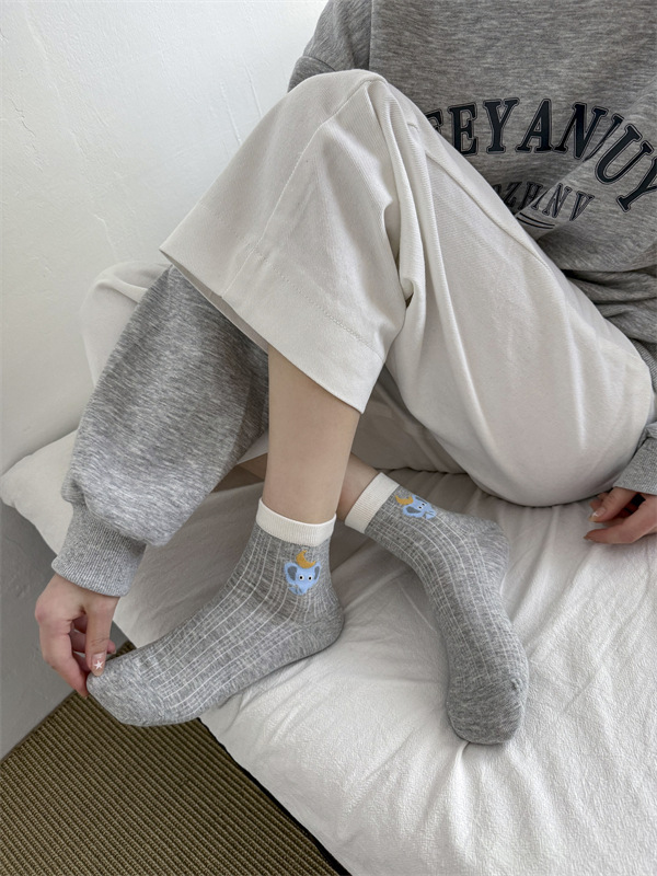 봄과 여름 얇은 AB 한국 강아지 짧은 튜브 만화 양말 낮은면 양말 중간 튜브 양말 컬러 매칭 닥스 훈트 개 양말