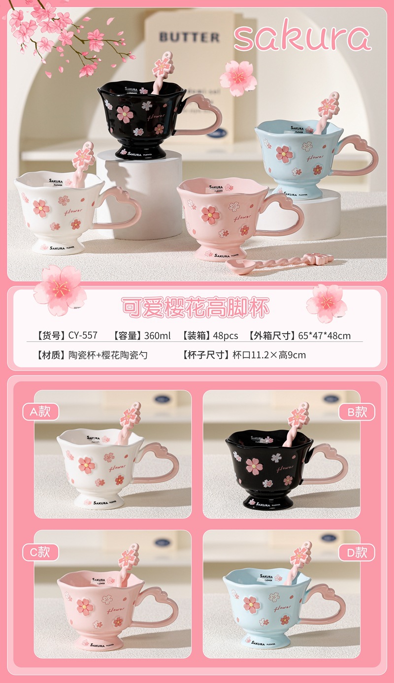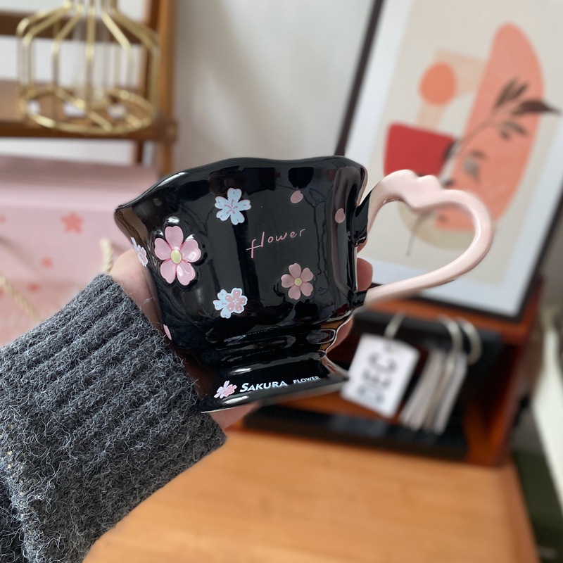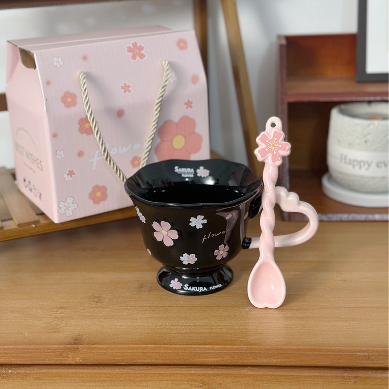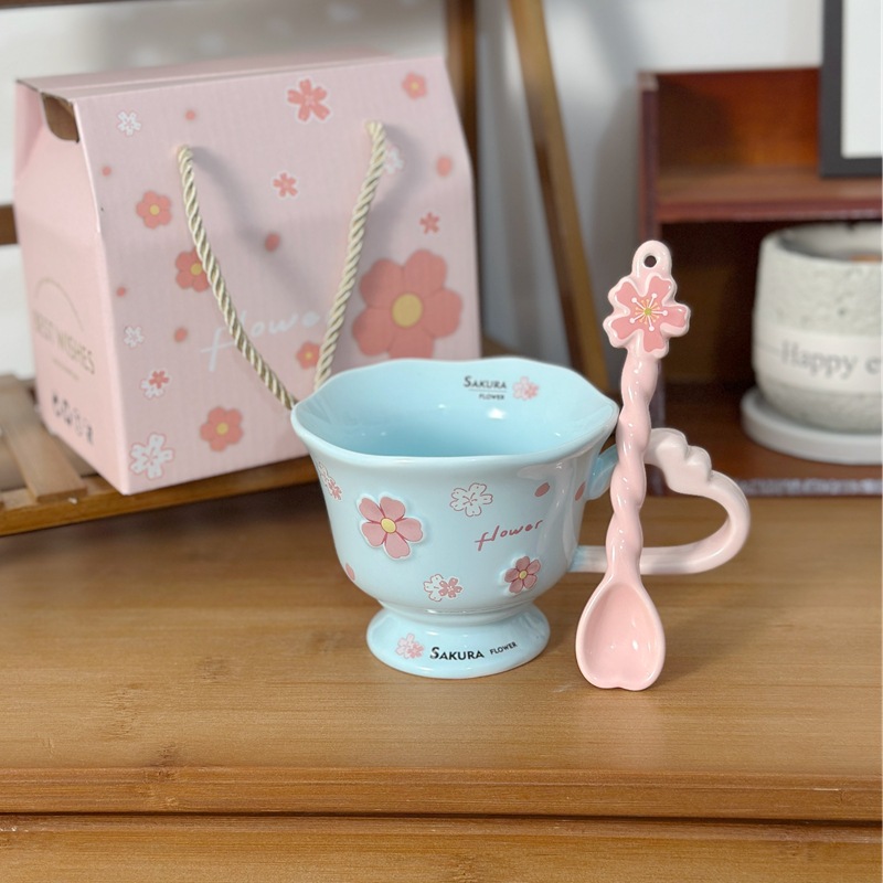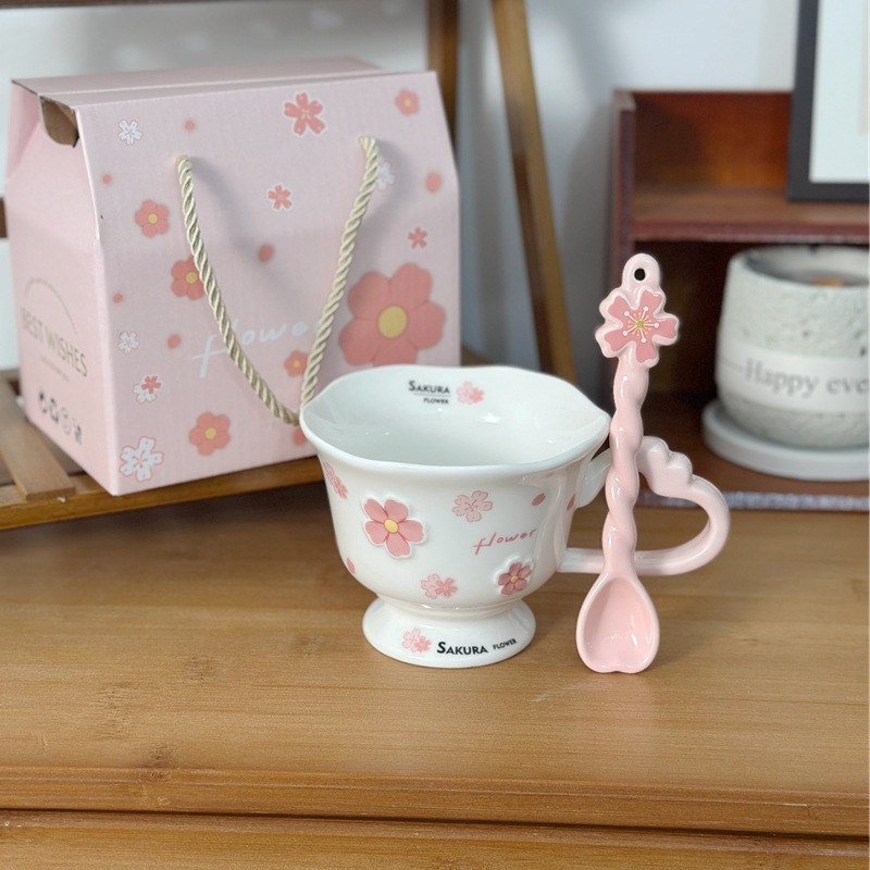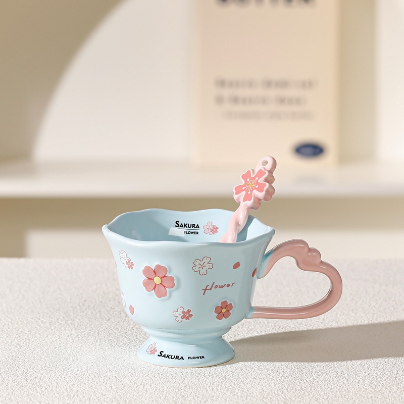 높은 뷰티 가치 벚꽃 양각 머그잔 독특한 창조적 인 핑크 가정용 세라믹 워터 컵 잔 손 선물스토어 가기